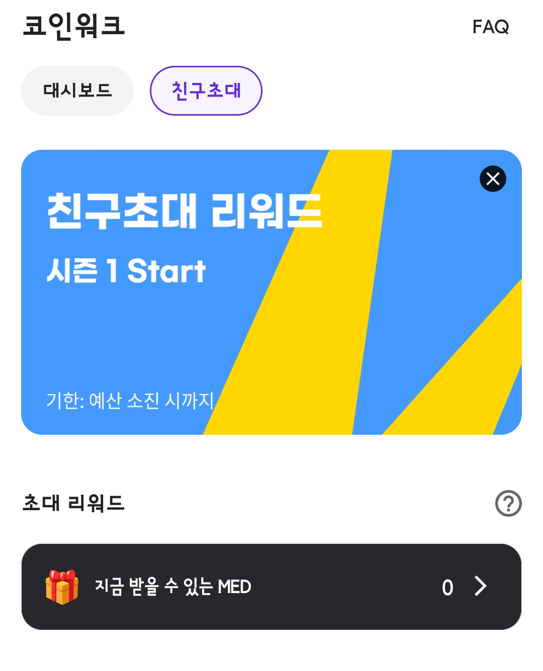 또한 메디패스 코인워크는 친구초대 시스템을 적용해서 코인워크에 가입시 친구초대 코드 번호를 입력하면 MED 코인을 추가로 획득 할 수 있습니다.
