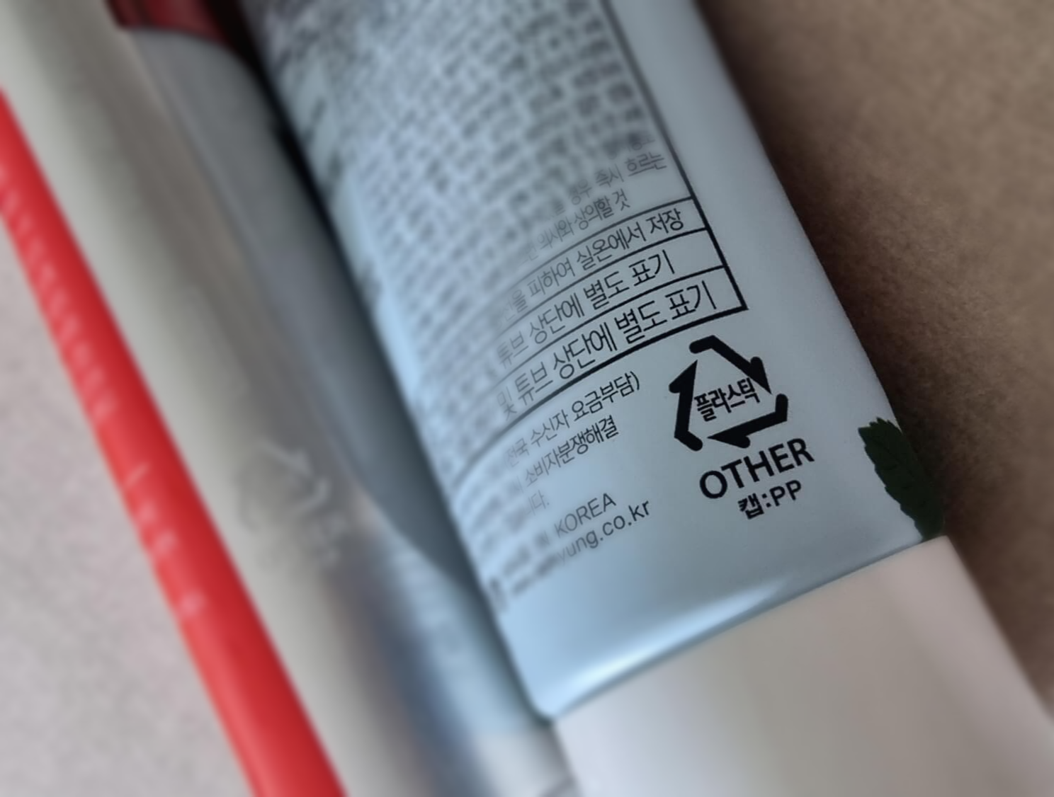 우리가 매일 사용하는 치약을 보시면 '플라스틱 OTHER'이라는 표시가 있습니다. 플라스틱 재활용 마크가 있으니 당연하게 다 쓴 치약은 재활용 플라스틱으로 분리수거를 하고 있습니다.