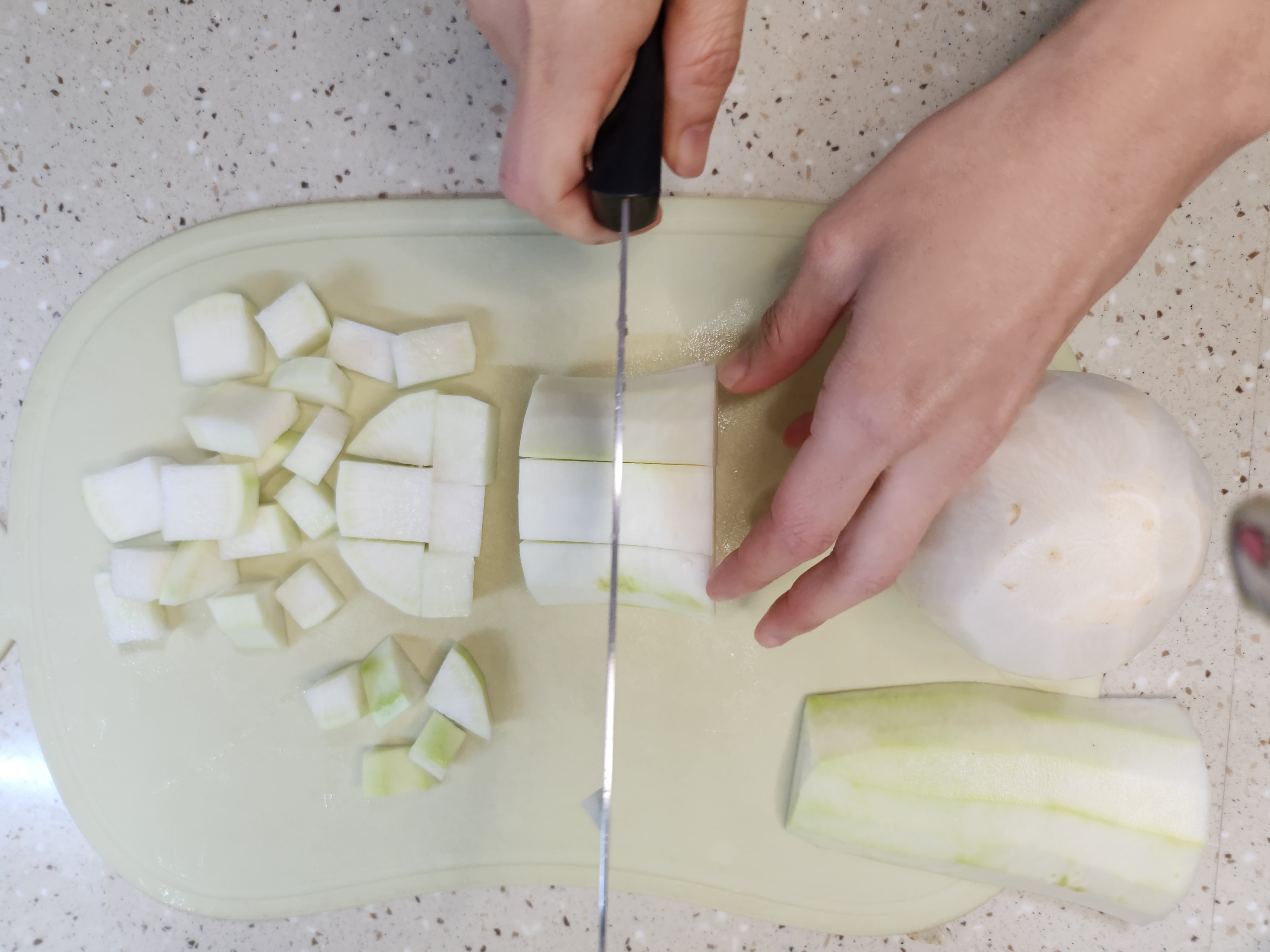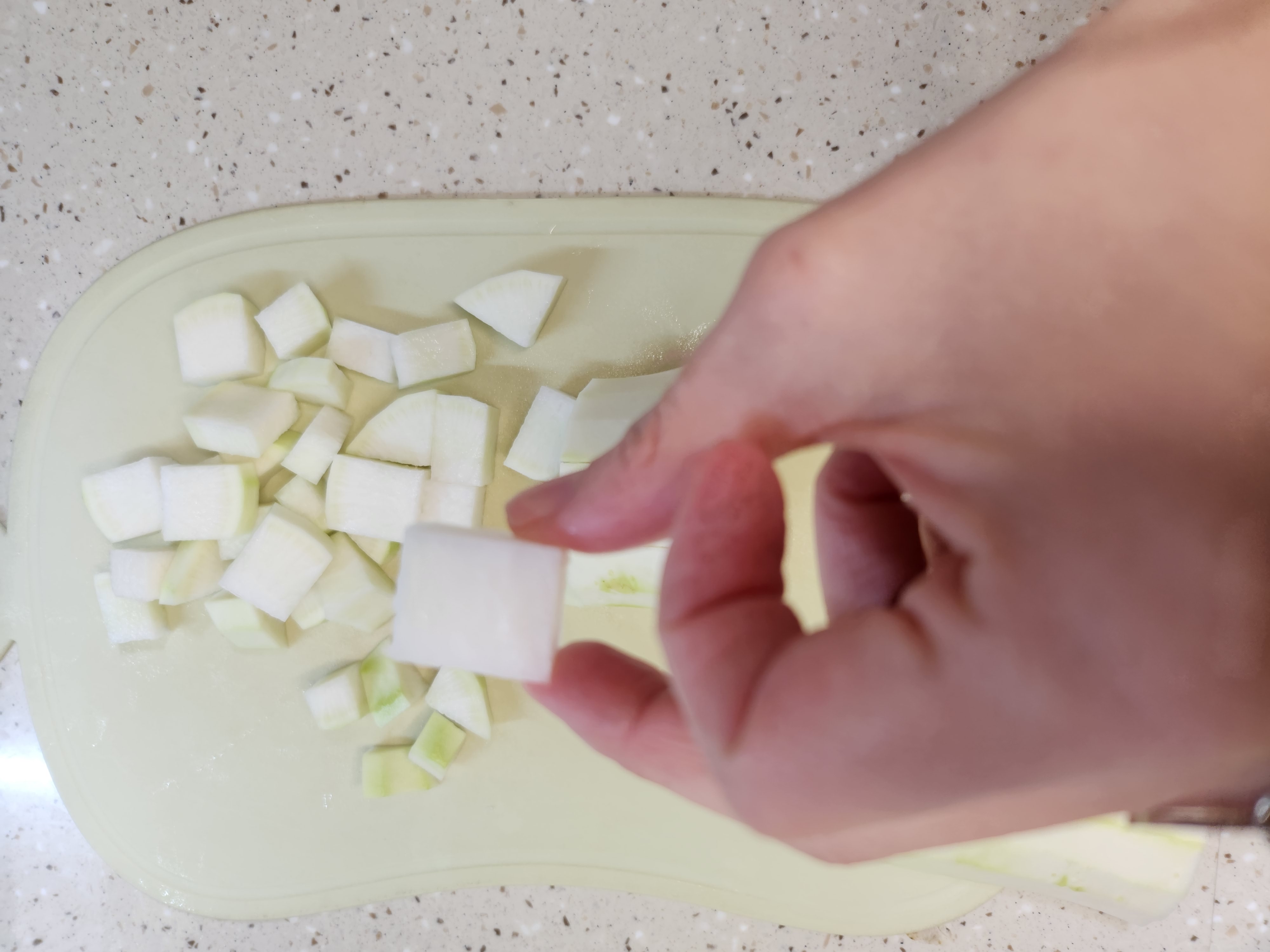 ① 무를 먹기 좋은 크기로 잘라줍니다.