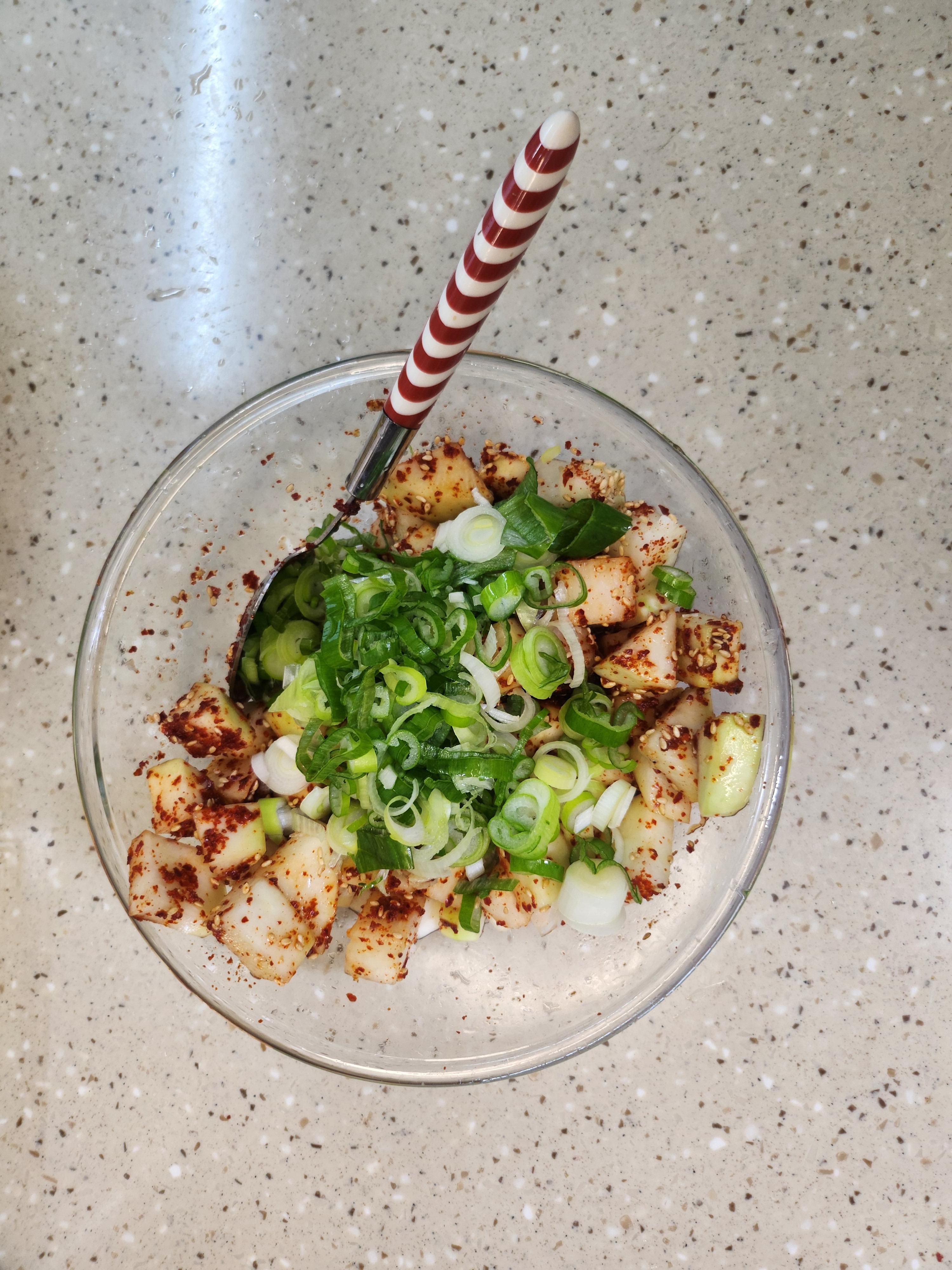 ④ 대파 혹은 쪽파를 잘라 함께 버무린 후 마지막으로 깨를 뿌려주면 완성입니다.