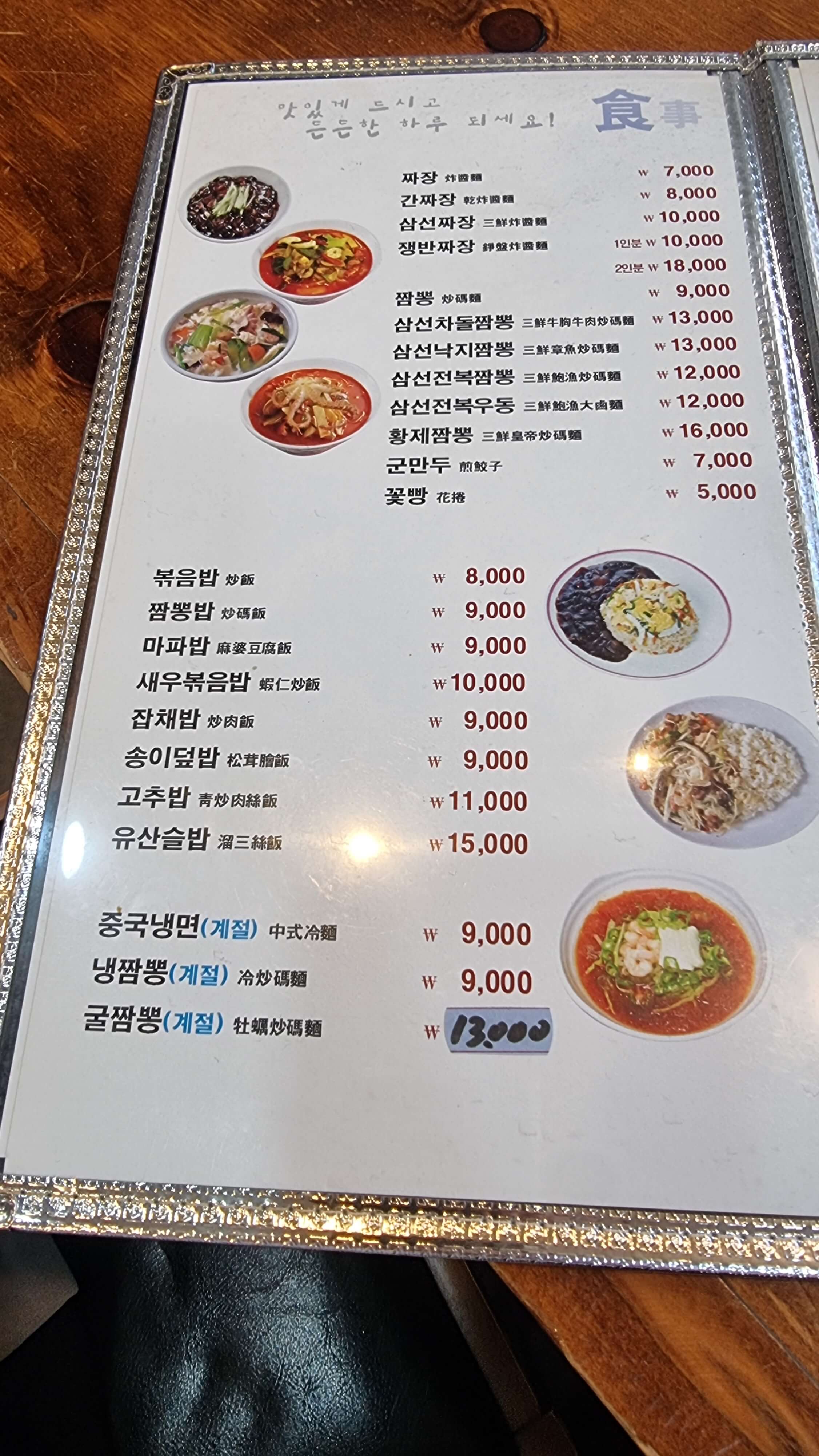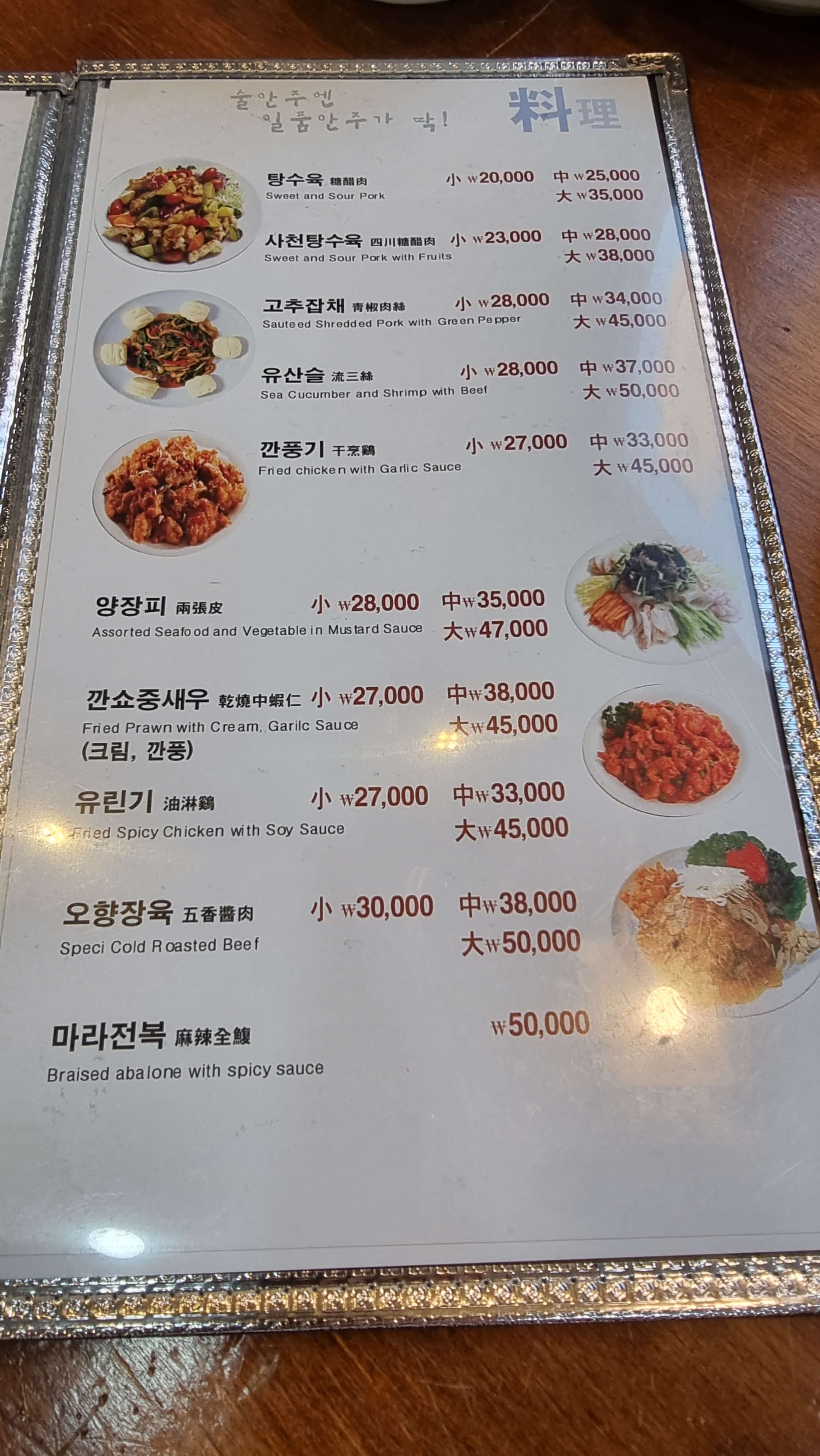 동탄 중국집, 손조오 메뉴 안내입니다.