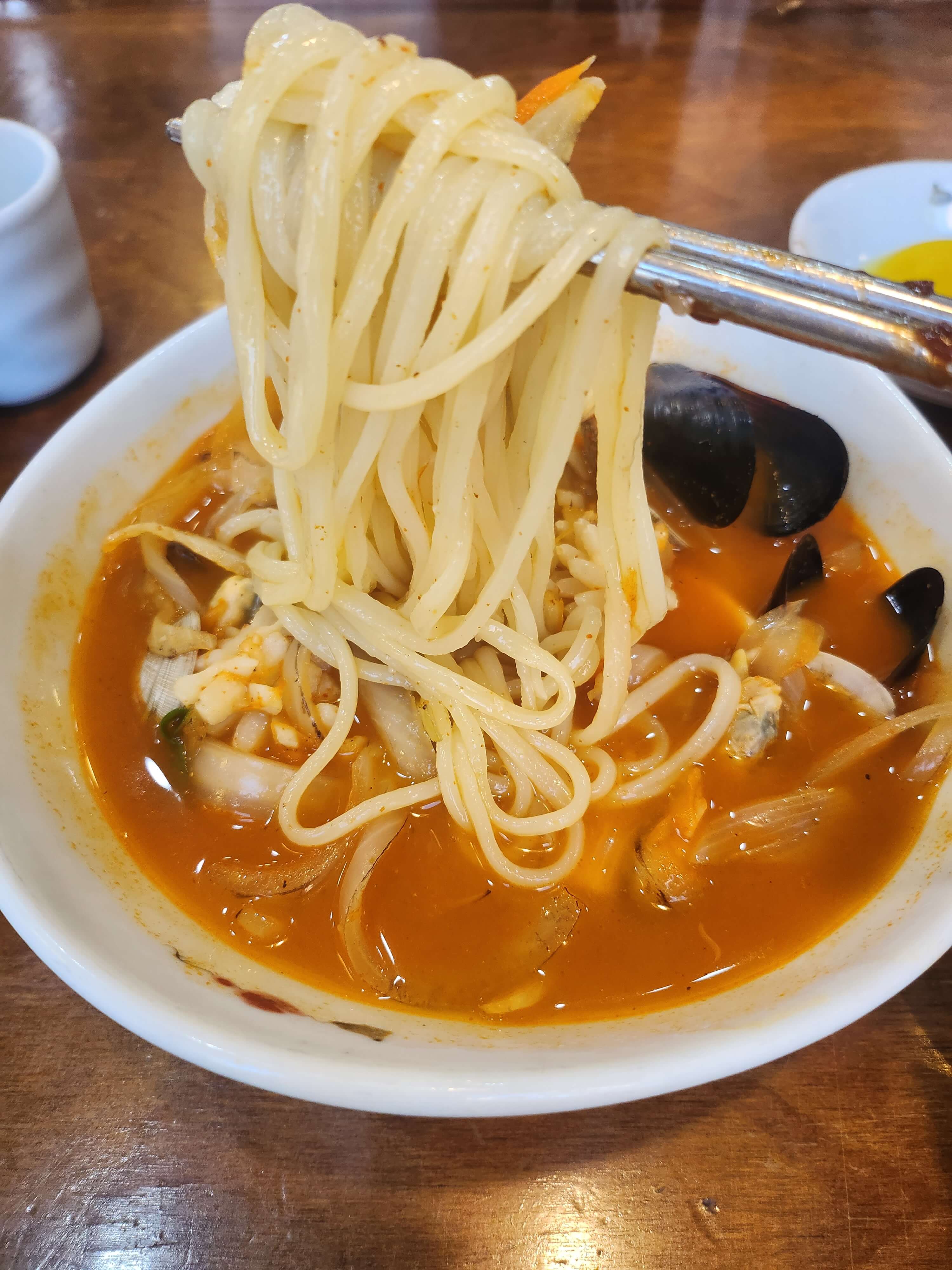 맵지도 안 맵지도 않은 얼큰한 맛. 육수가 사골육수여서 그런지 많이 맵지 않아도 깊은 맛이 좋습니다.