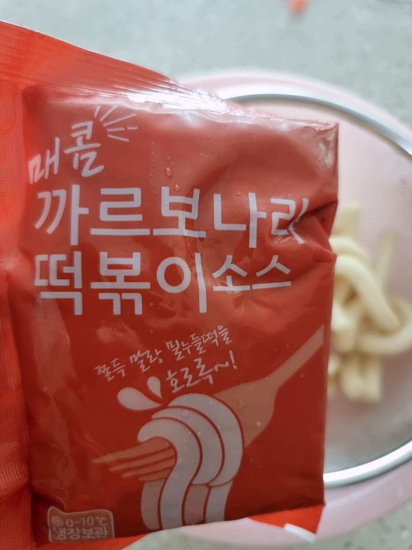 가격은 인터넷 구입가 4,980원이고, 2인분 기준 400g에 내용 구성품은 말랑한 밀떡과 매콤 까르보나라 떡볶이 소스가 들어 있습니다.
