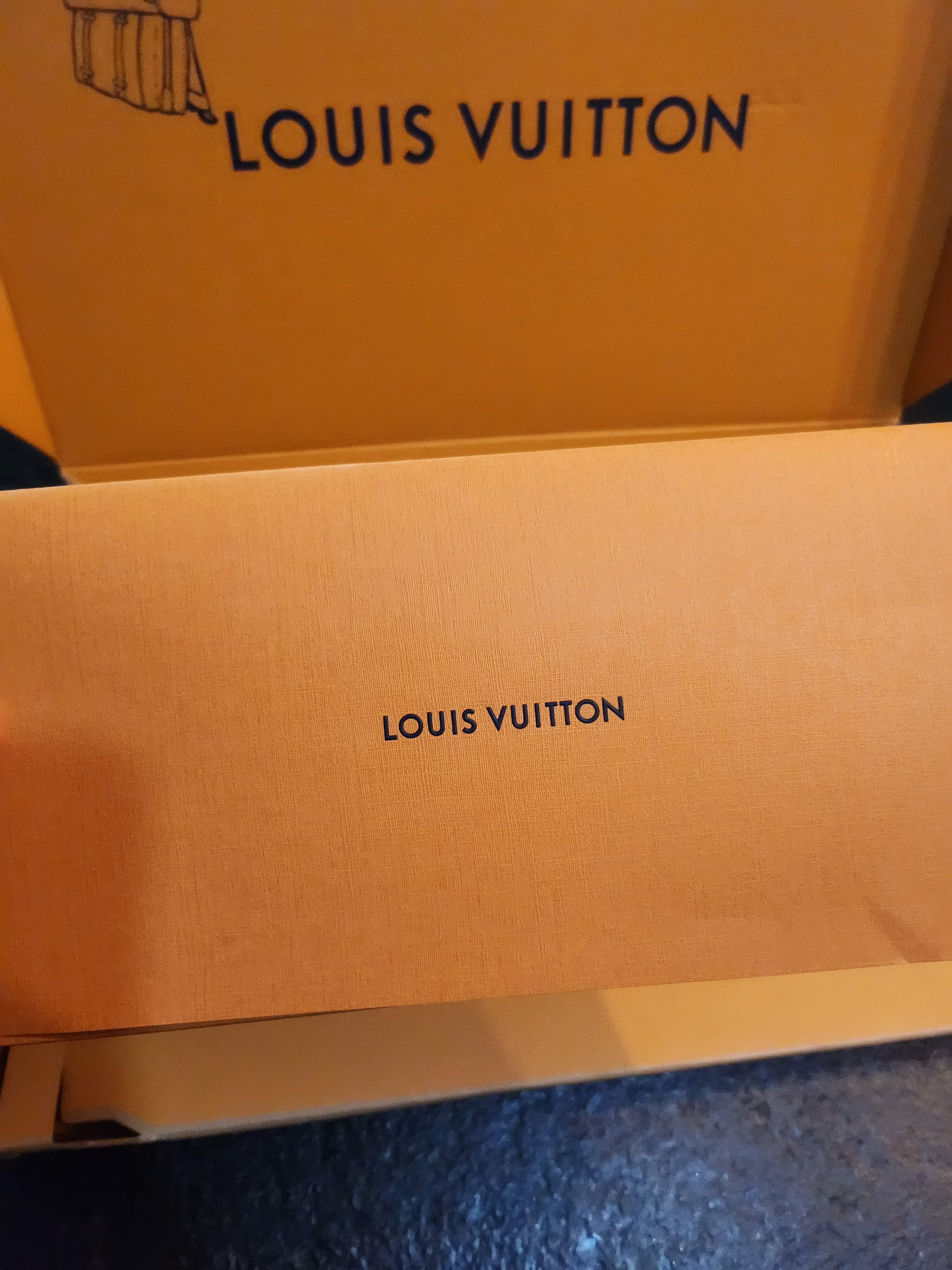누런 박스를 개봉하면 루이비통 특유의 오렌지 컬러의 내부가 공개됩니다.