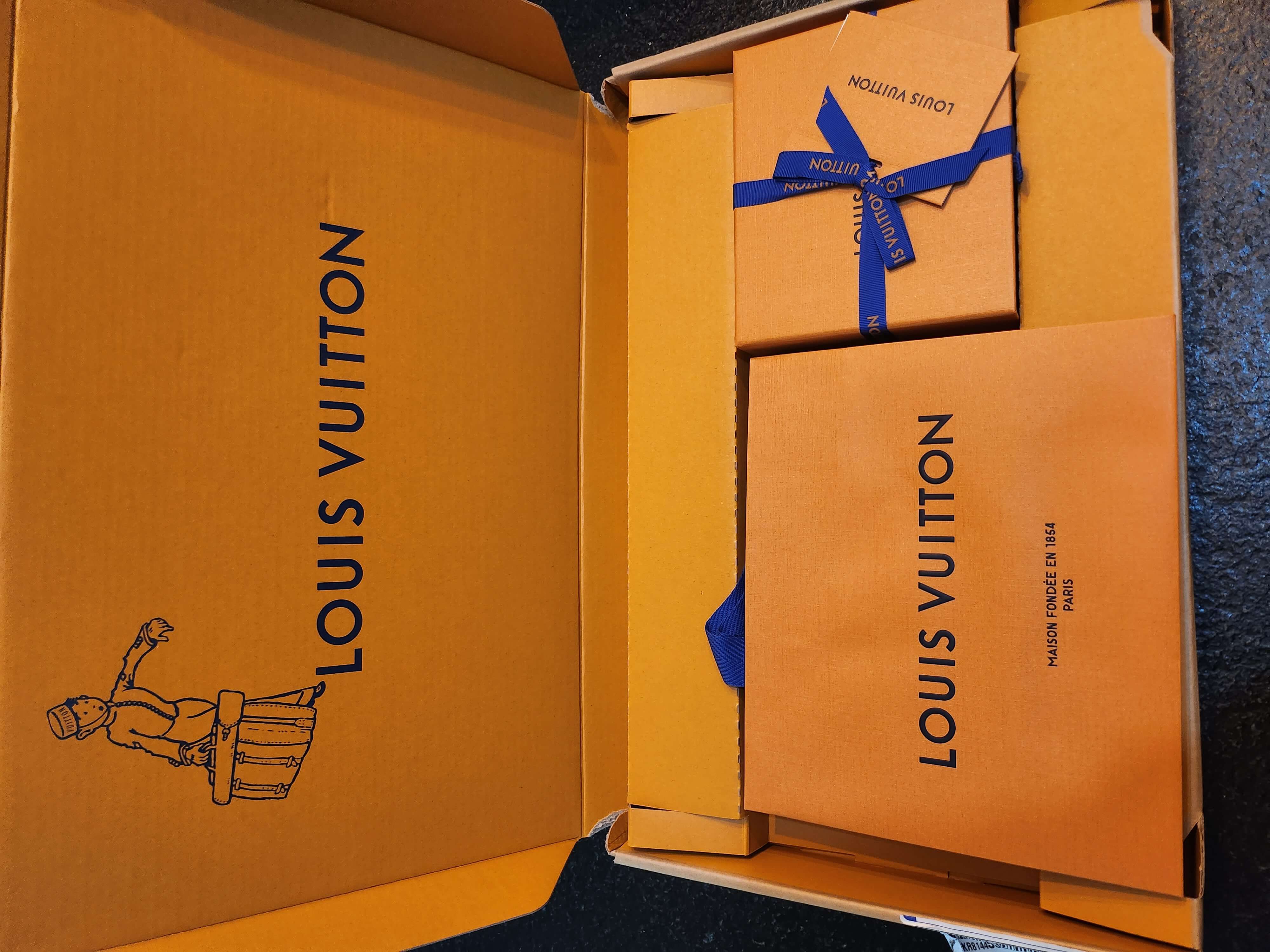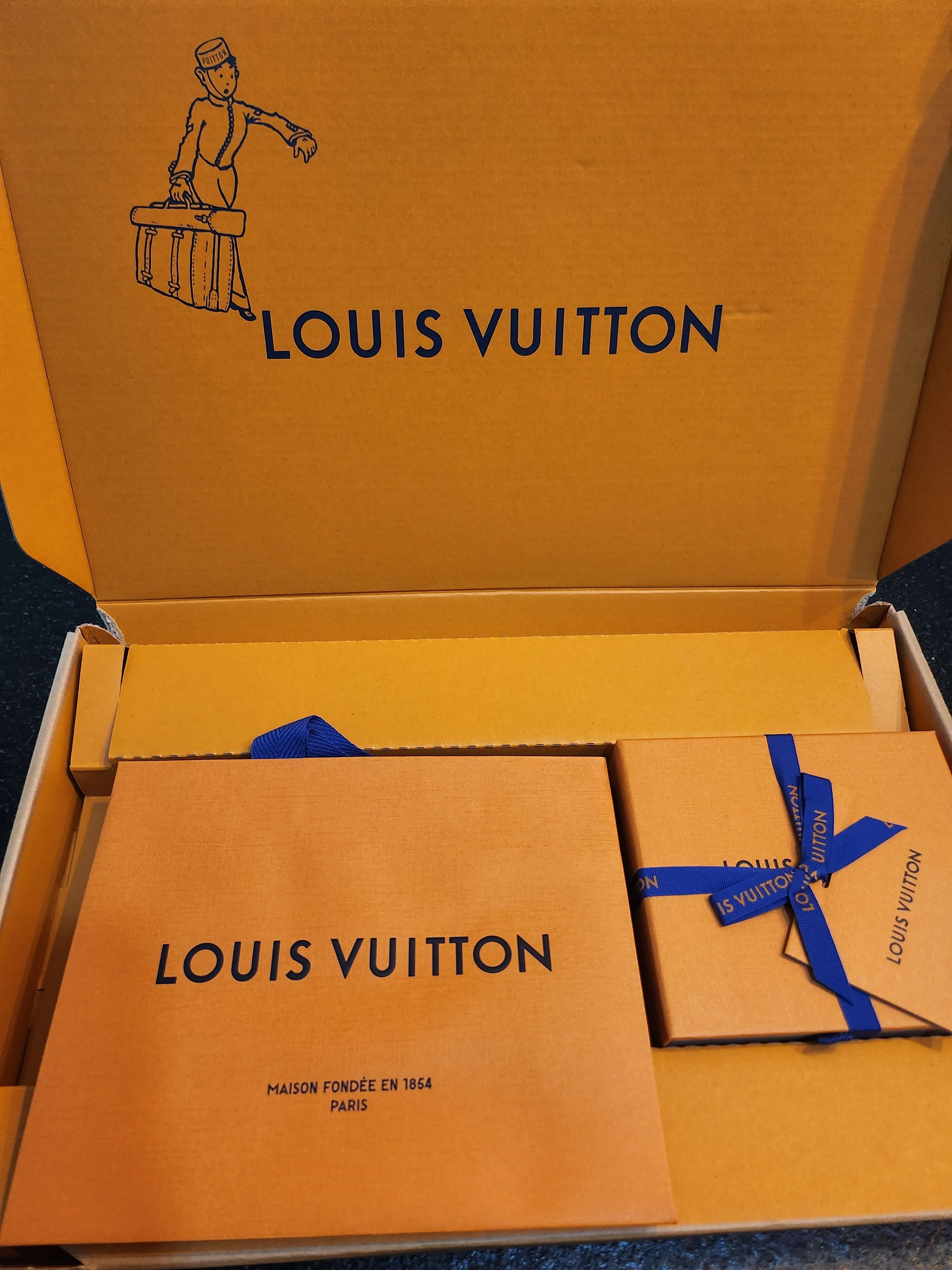 루이비통 온라인 구매시 구성품입니다. 쇼핑백, 박스포방된 본품(작은 편지지포함), 큰 편지지 1개, 환불 혹은 교환신청서 1매 이렇게 구성되어 있습니다.