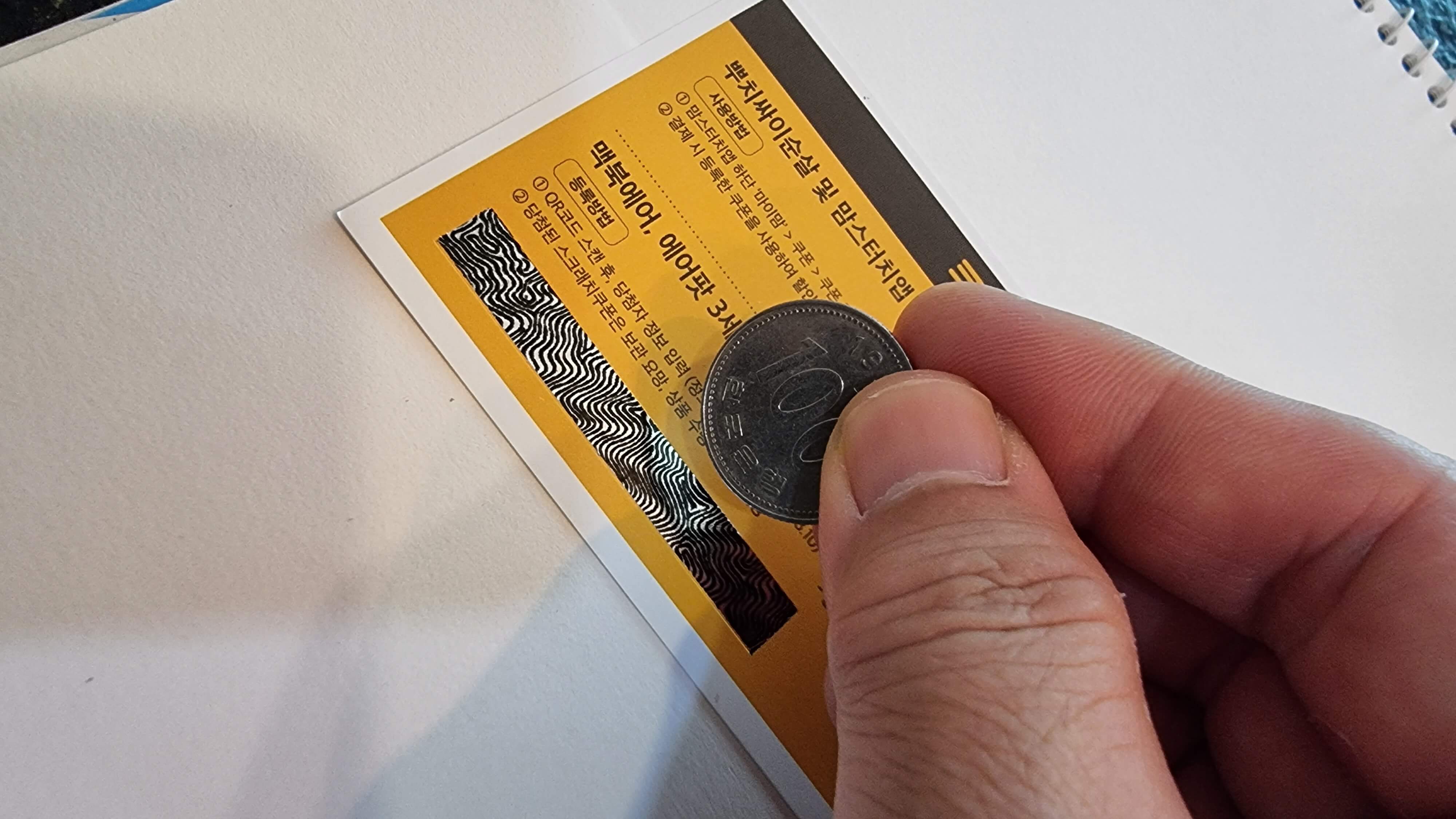 간장마늘싸이버거 세트 주문 후 한 장의 스크래치 쿠폰을 받았습니다. 뒷면에 스크래치 쿠폰을 동전을 긁어서 당첨을 확인하시면 됩니다. 결과는 역시 100% 당첨 1,000원 쿠폰이 당첨되었습니다. 천 원 쿠폰은 맘스터치 앱을 설치 후 쿠폰 등록에서 코드 번호를 입력하시면 됩니다.