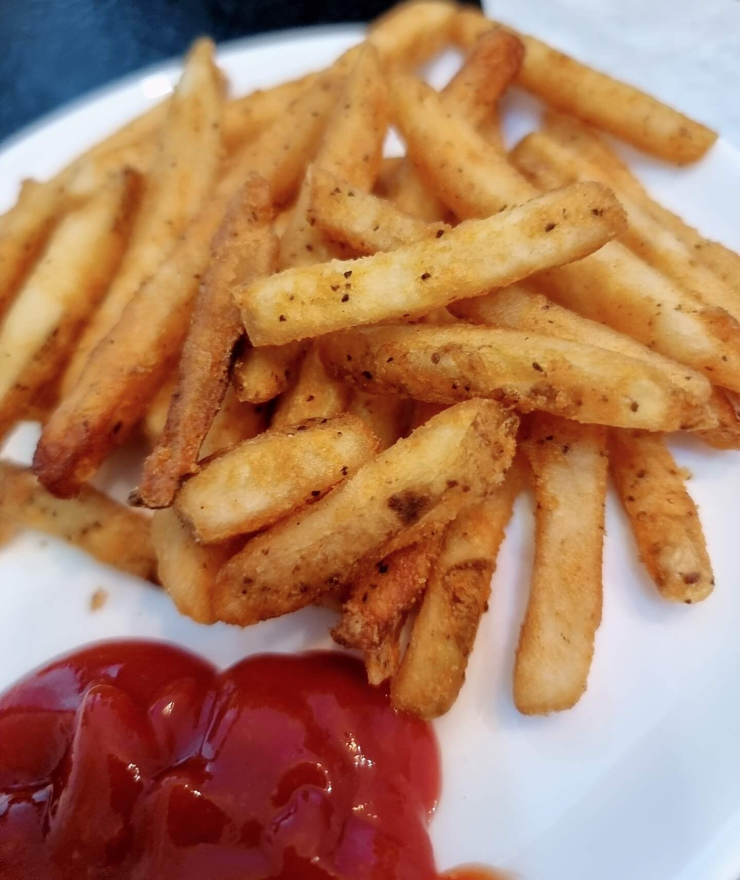우선 케이준감자튀김은 케첩이 없어도 짭조름한 게 맛이 있습니다. 그냥 먹는 게 건강에 더 좋을 거 같습니다. 건강을 위해 너무 짠 음식은 멀리 해야죠! 하면서 버거를 먹고 있습니다.