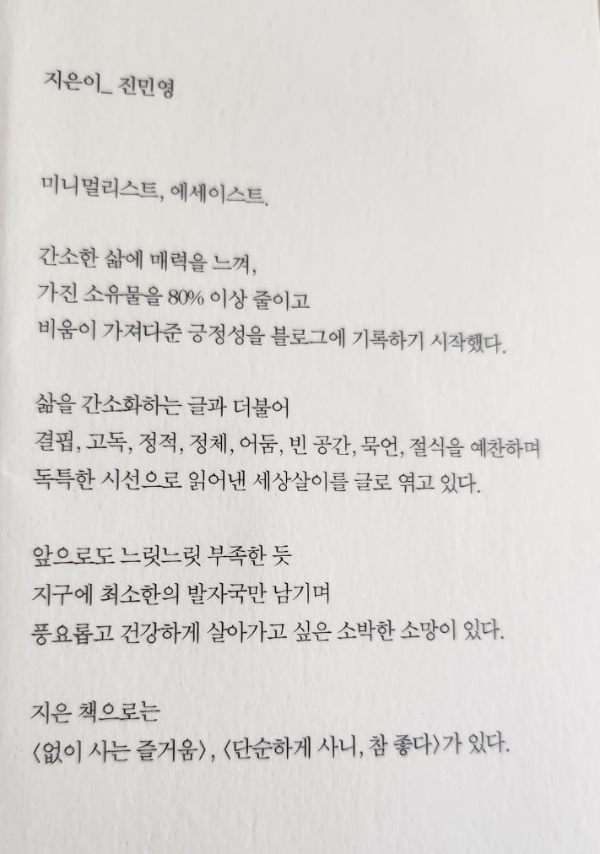 미니멀라이프를 지향한다면, 「조그많게 살 거야」 - 진민영 에세이