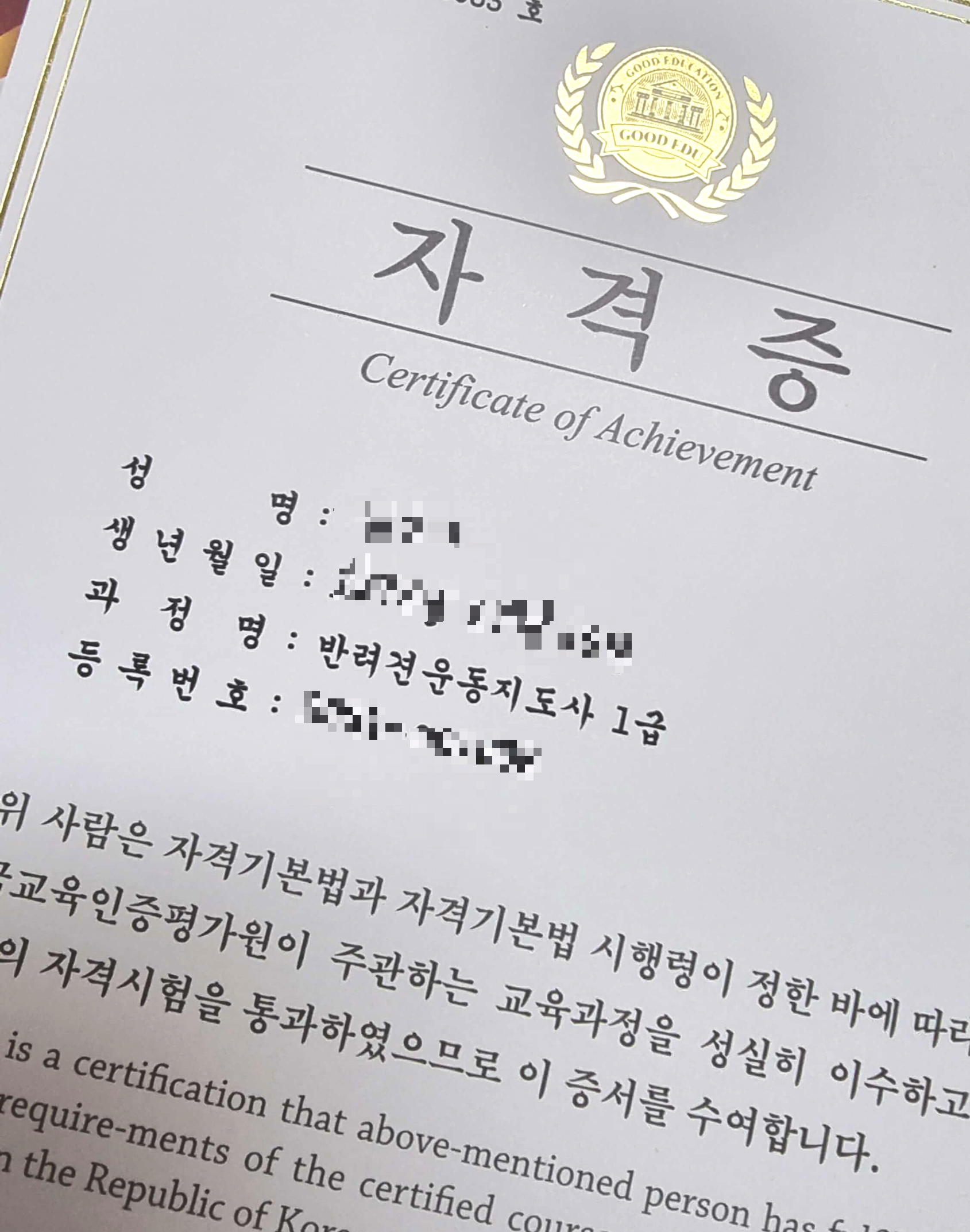 그래서 강아지와 함께 생활하기로 마음먹고 반려견 운동지도사 민간자격증을 도전했고 자격증 합격까지 이루었습니다. 오늘은 민간 자격증 반려견 운동지도사를 소개하겠습니다.