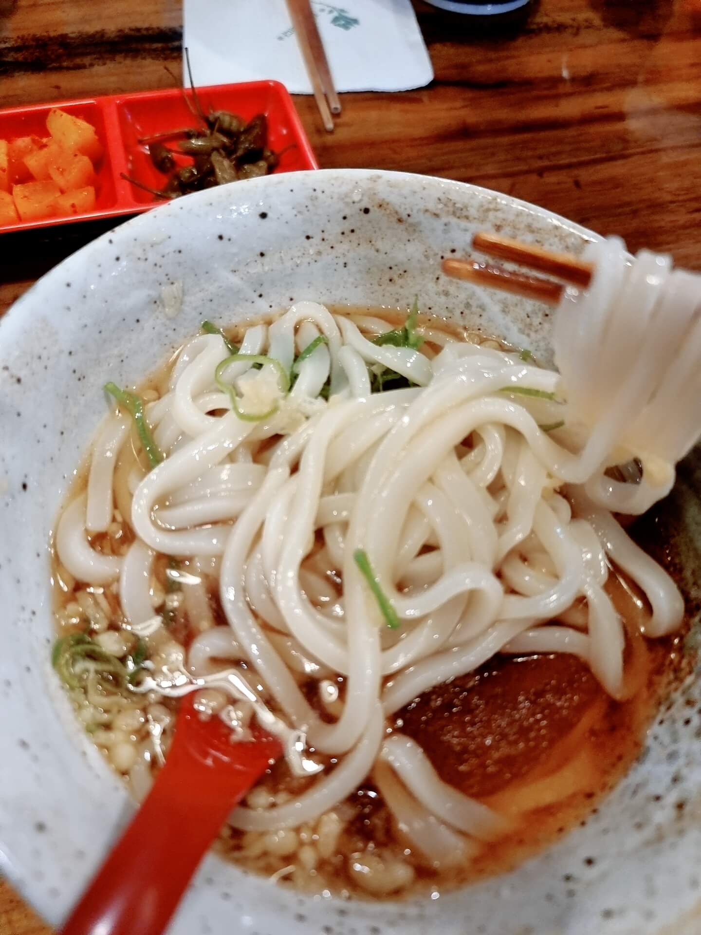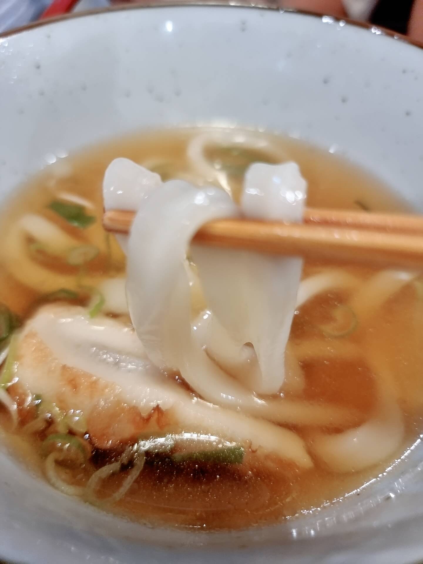 사진으로 표현할 수 없는 이 탱탱한 면은 정말 일품입니다. 냉우동이라서 탱글탱글 하겠지 생각하지 마세요! 일반 오뎅우동과 진우동에 있는 우동면 역시 쫄깃쫄깃 탱글탱글 합니다.