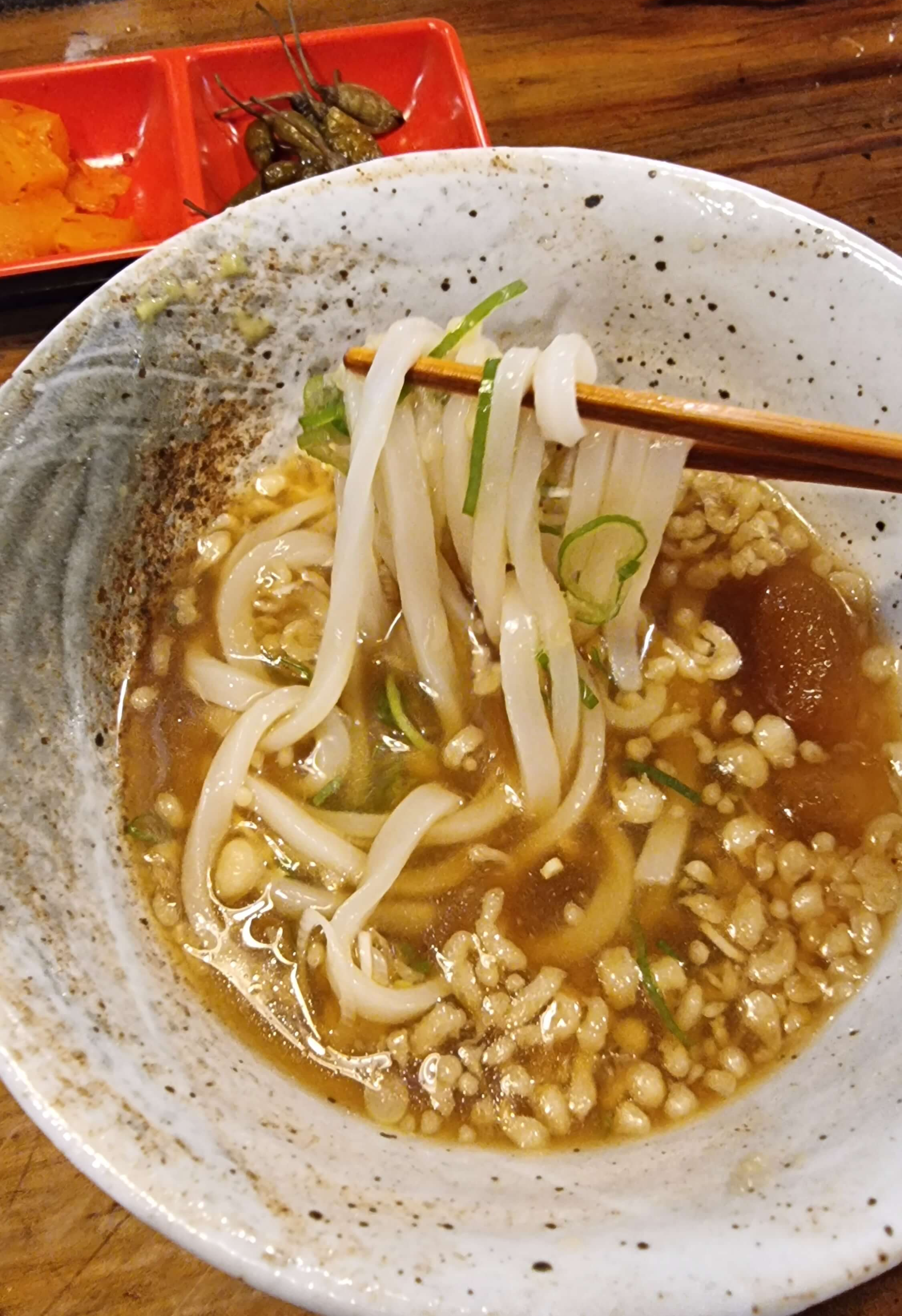 냉우동 안에 들어 있는 튀김가루가 보이시나요? 우동면을 다 먹고 이렇게 숟가락으로 떠먹었는데, 아직도 바삭함이 남아 있습니다. 우동면에서 국물 그리고 안에 들어 있는 튀김가루까지 완벽한 맛을 느낄 수 있는 냉우동이었습니다.