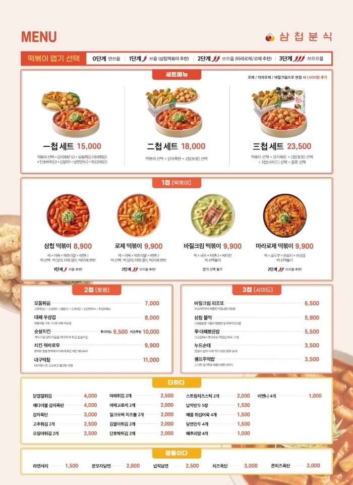 삼첩분식 인기메뉴와 0단계 맵기후기