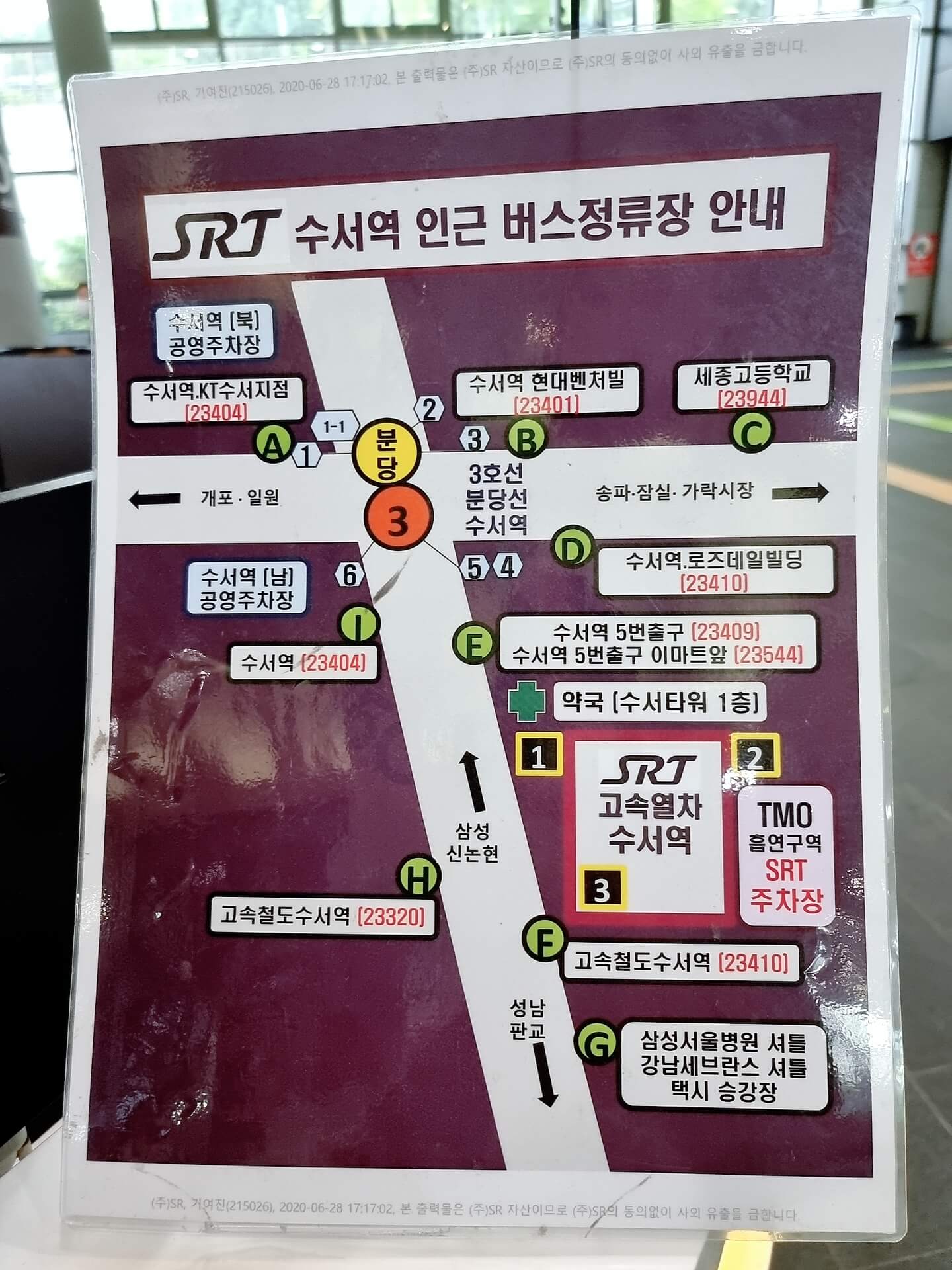 마지막으로 수서역 SRT 인근 버스정류장 안내 사진입니다. 삼성서울병원, 강남세브란스 셔틀 승강장도 표시되어 있으니 잘 참고해서 이용해 보세요!