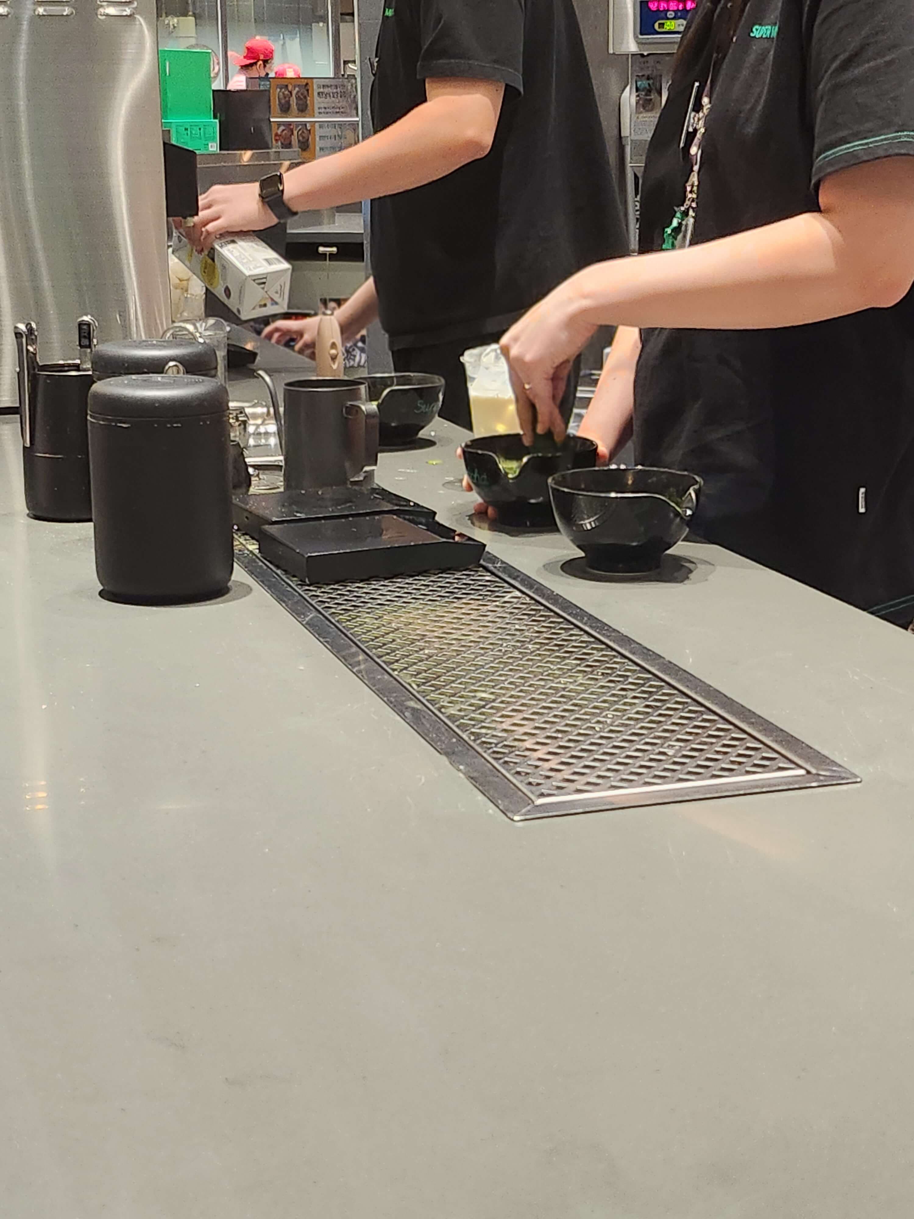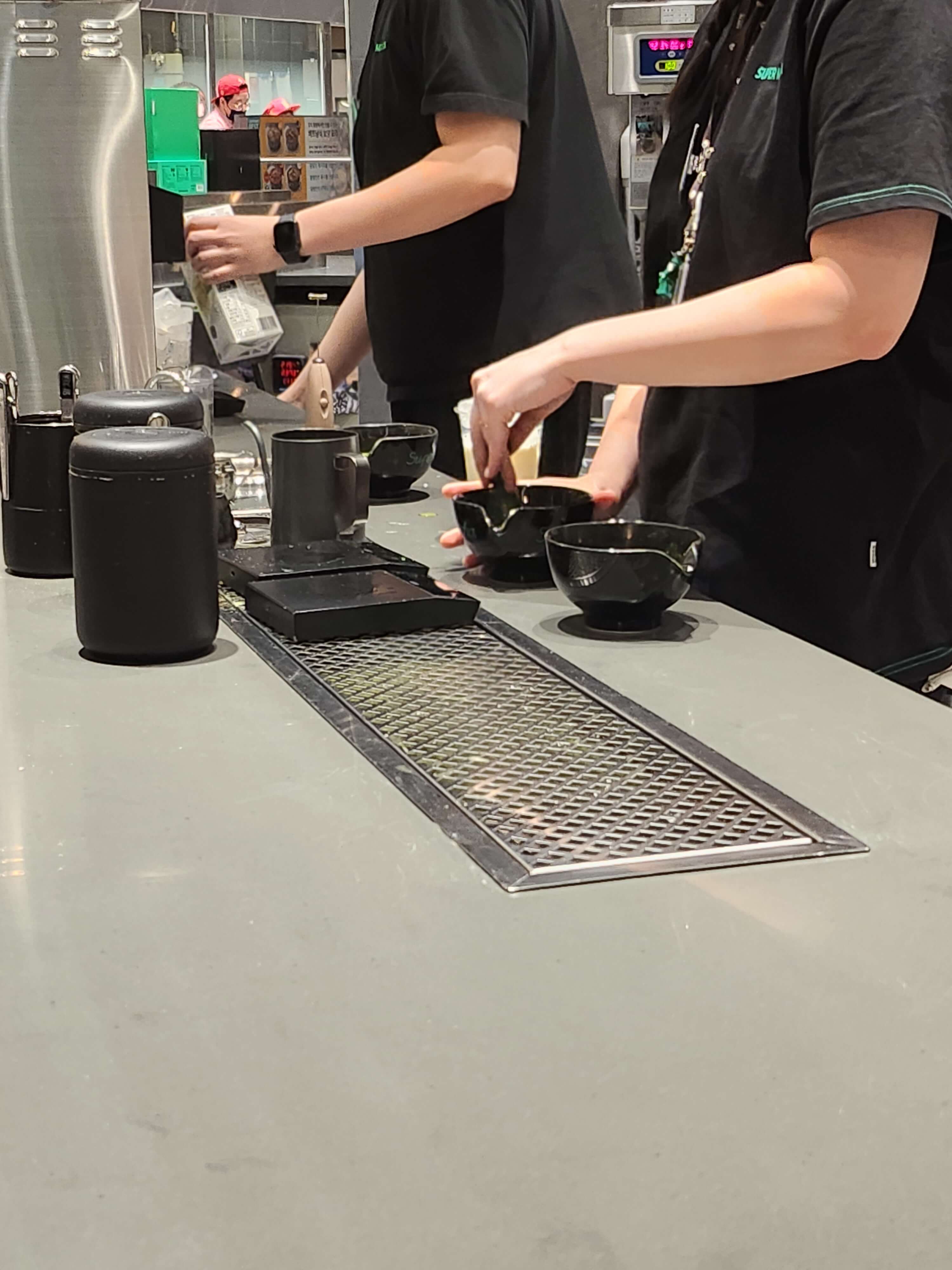주문을 하면 직원분이 말차를 도구로 개에서 만들어주세요. 그냥 컵에 넣어서 흔들어 주어도 비슷한 맛일텐데 그런 움직임을 보는 것 자체가 맛이 올라가는 기분이 듭니다.