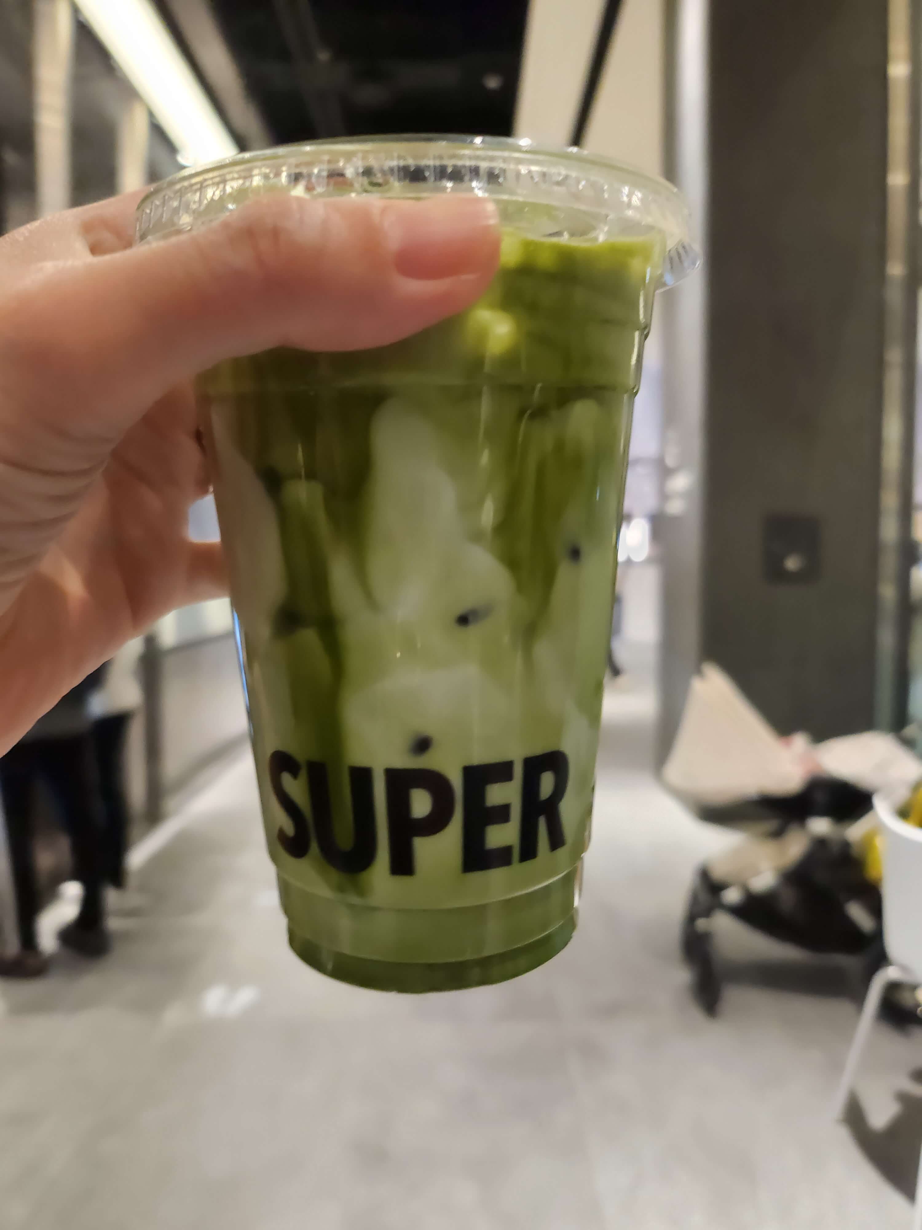 혹시 스타벅스 그린티라떼를 좋아했던 분이라면 이해할만한 설명인데... 이 맛은 스타벅스 그린티라떼에 파우더 추가 2회 한 맛입니다. 그만큼 진하고 쌉싸름하고 적당히 달콤합니다. 동탄 롯데백화점까지 왔는데 슈퍼말차 안 마시고 가면 뭔가 섭섭한 생각이 들어요. 중독되었나? 녹차를 별로 안 좋아하는 분이라도 맛있게 드실 것 같아요. 초등학생인 우리 집 아이도 슈퍼말차를 엄청 좋아해요. 말차라떼에도 카페인이 꽤 있어 많이 주려고 하진 않지만 계속 뺏어먹고 싶은 맛인가 봅니다. 제 걸 자꾸 탐해요.