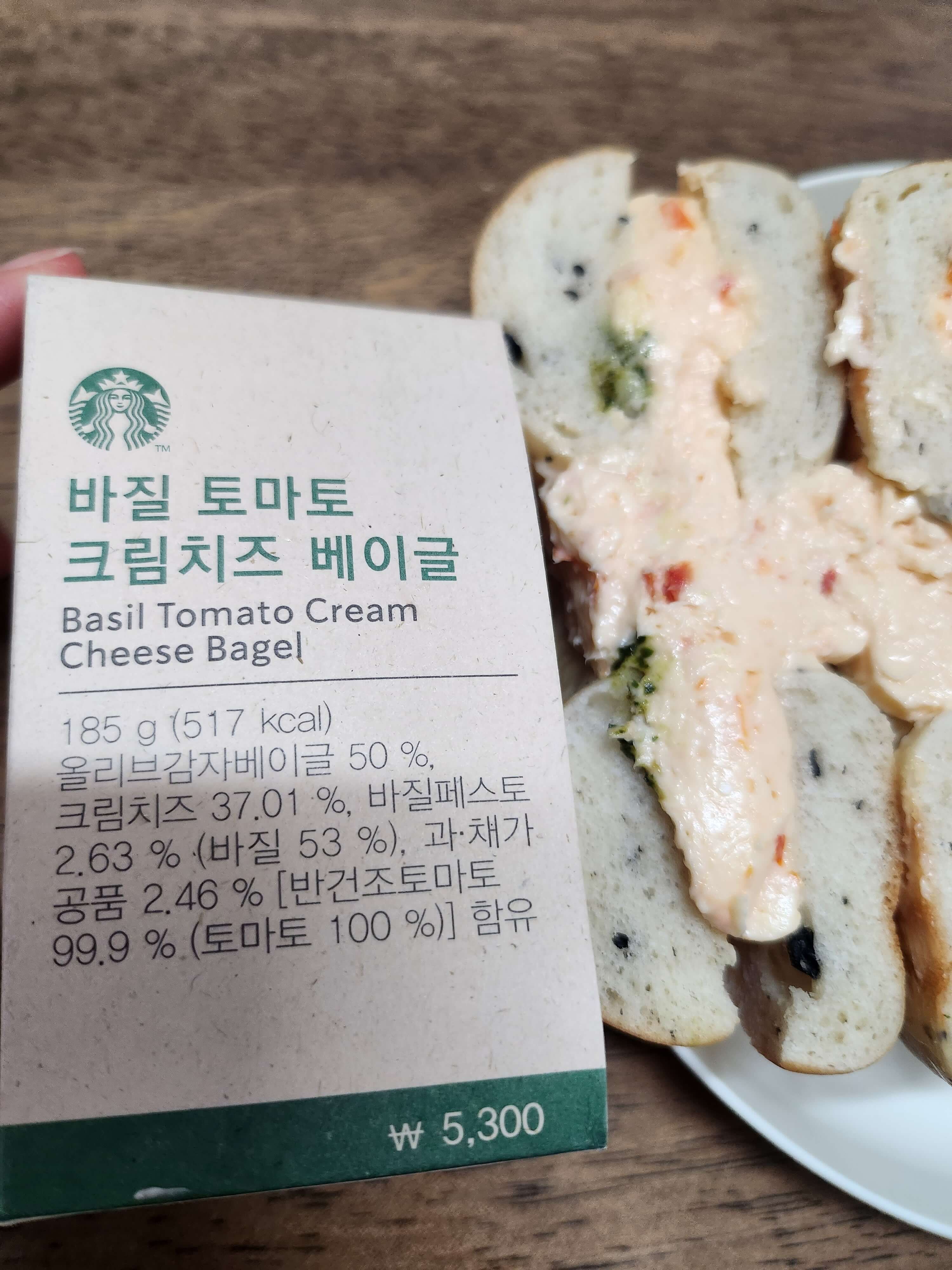 스타벅스 바질 토마토 베이글 크림치즈 시식 후기.