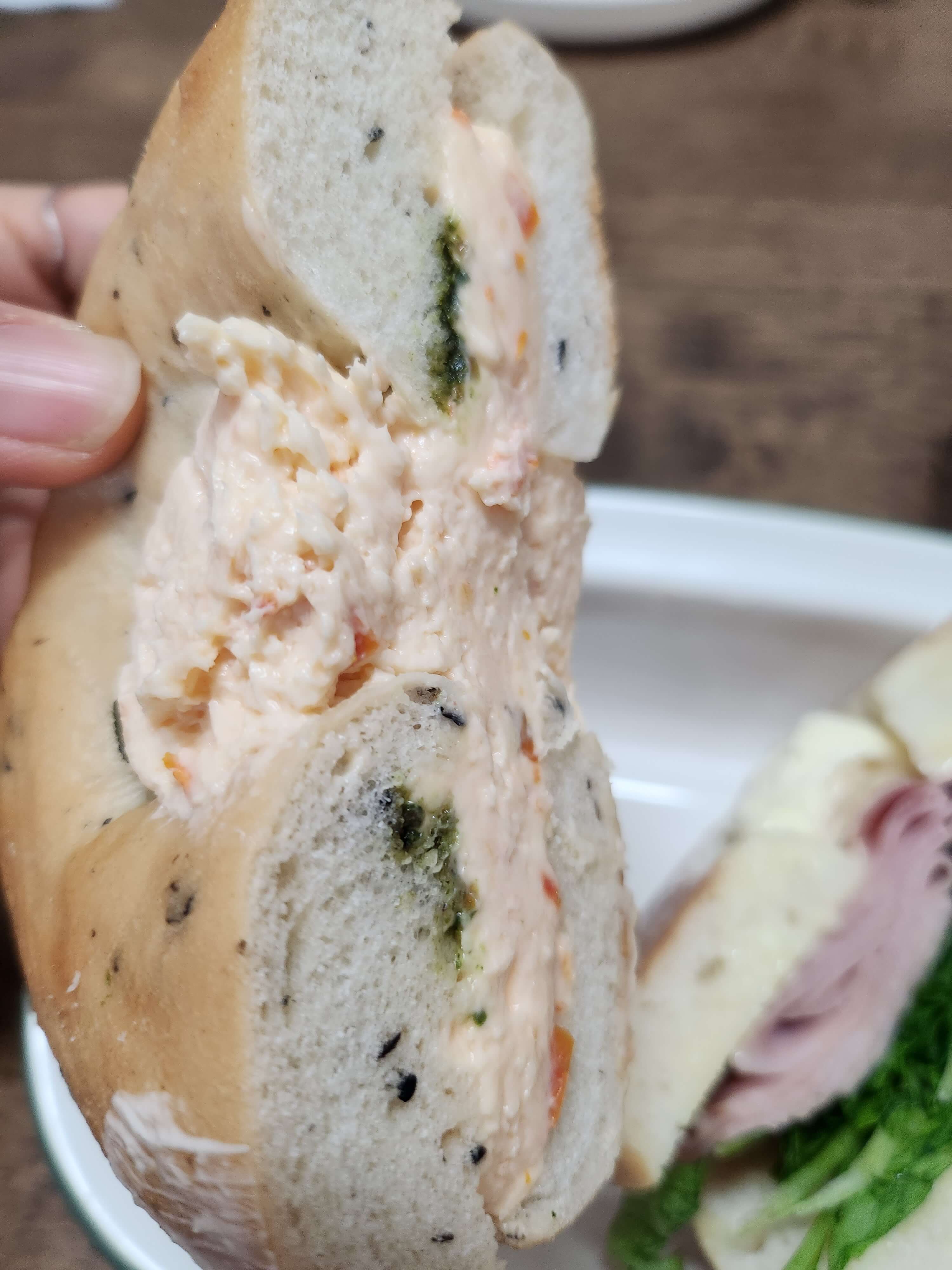 참고로 잠봉 베이글 샌드위치는 오후에도 여유있게 있는 모습이었습니다. 아무래도 잠봉 베이글보다는 바질 토마토 크림치즈 베이글이 인기가 훨씬 많은 듯합니다. 잠봉 베이글 가격이 더 비싸고 내용물도 육안으로 봤을 때 더 꽉 차 있는 느낌인데 왜 바질 토마토 크림치즈 베이글만 인기가 있는 것인가.... 이 의문은 한 입만 먹어봐도 알 수 있습니다.