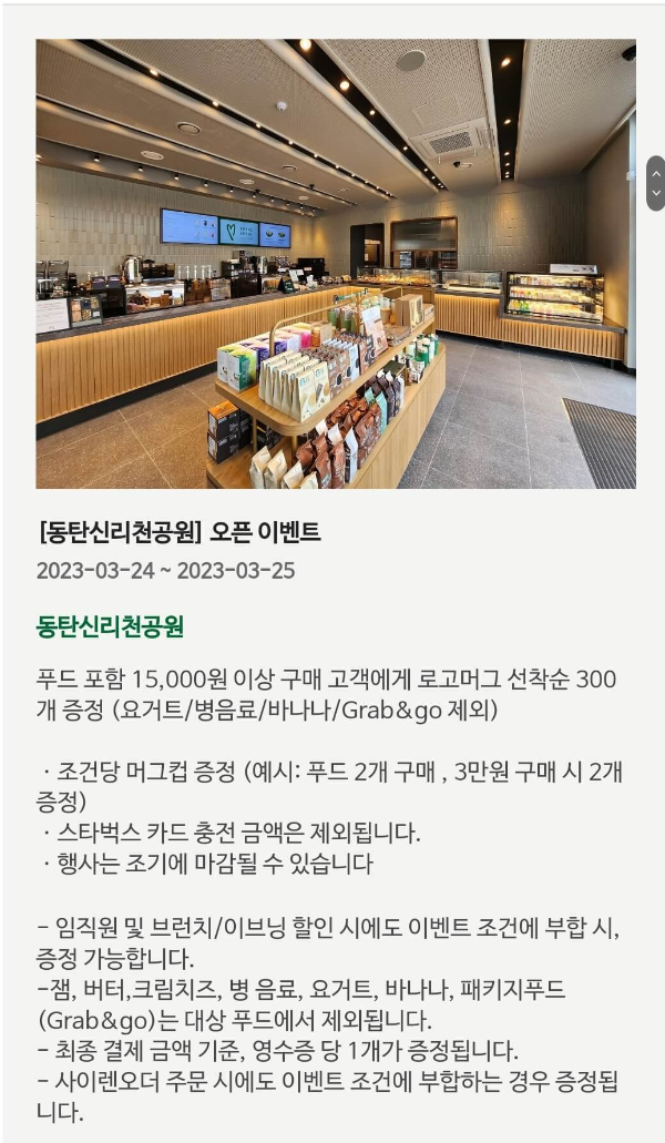 동탄 신리천 스타벅스 오픈 이벤트는?