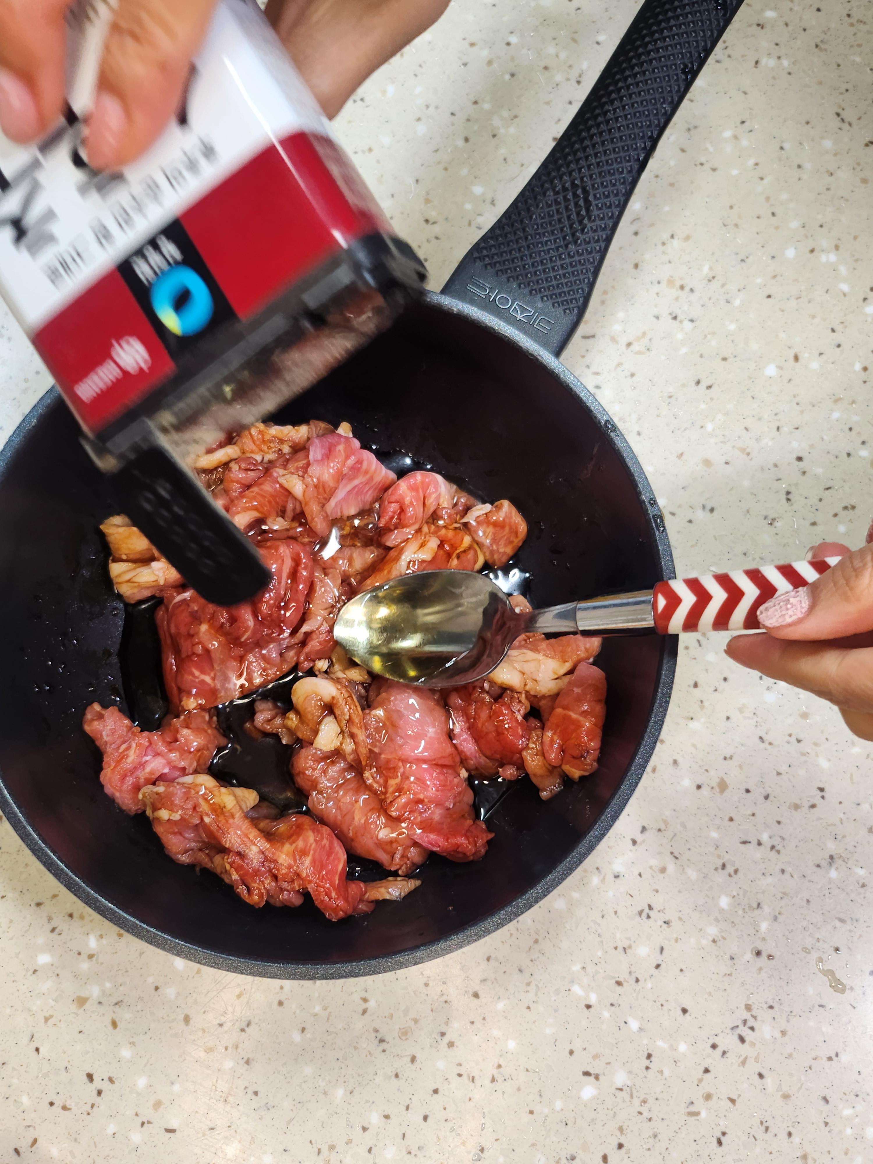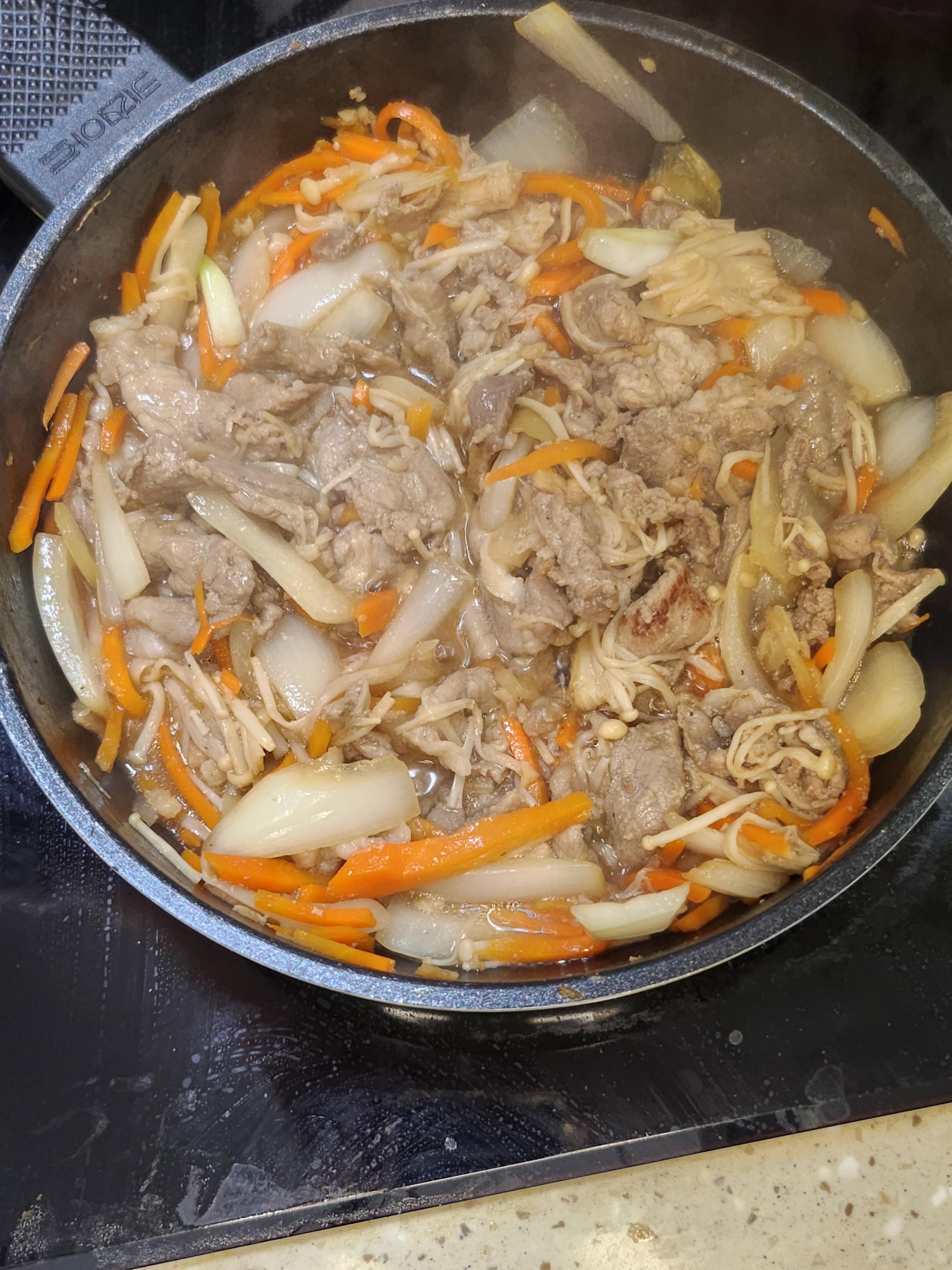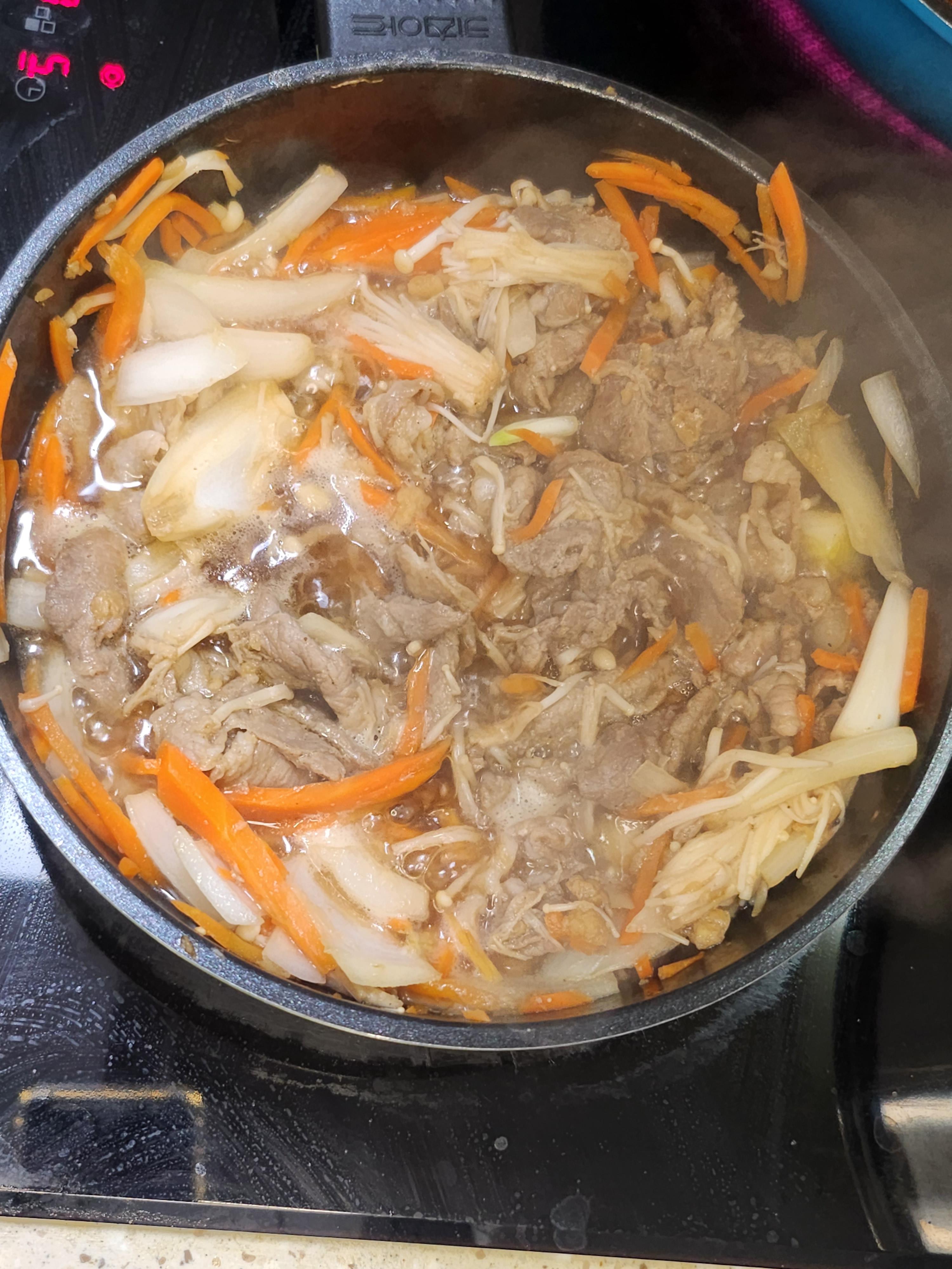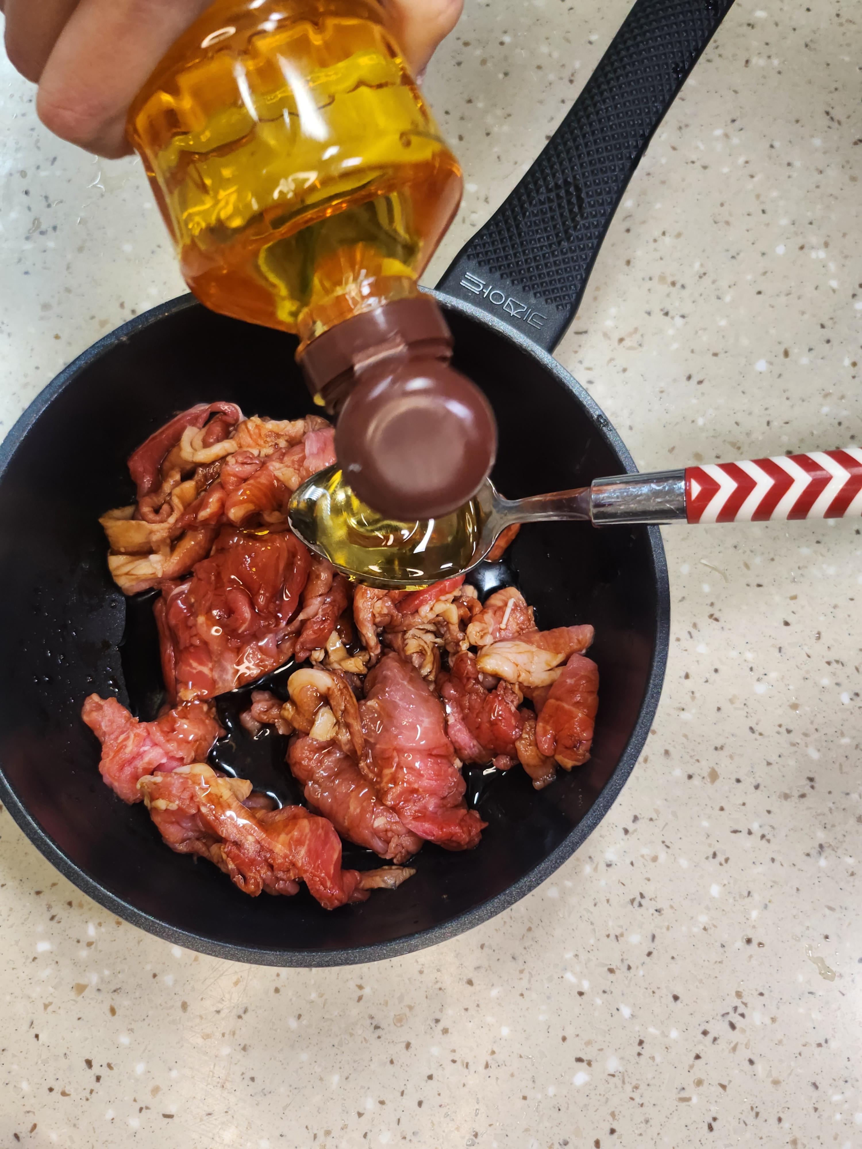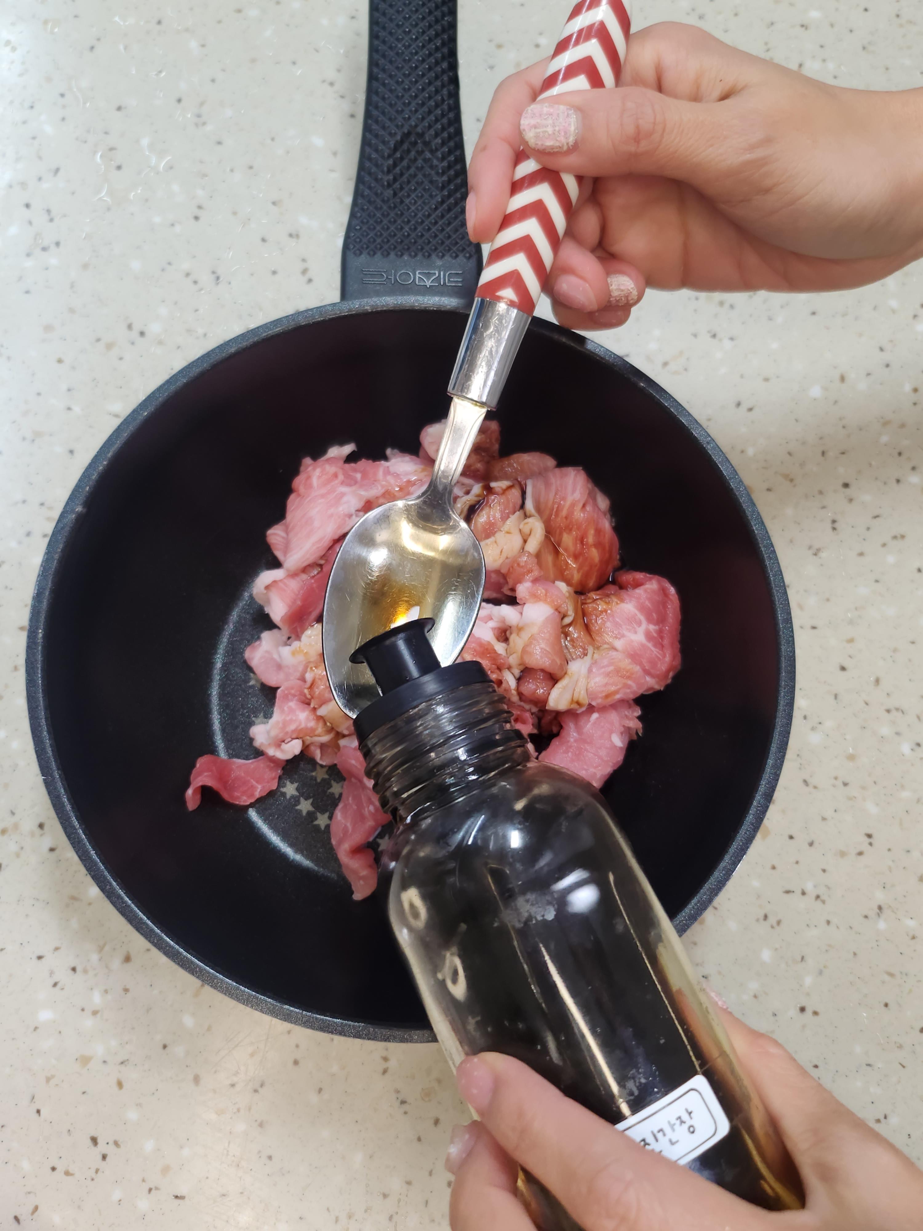 ④ 고기와 야채가 완전히 익었다면 그 위에 참기름을 약간 부어주면 끝.