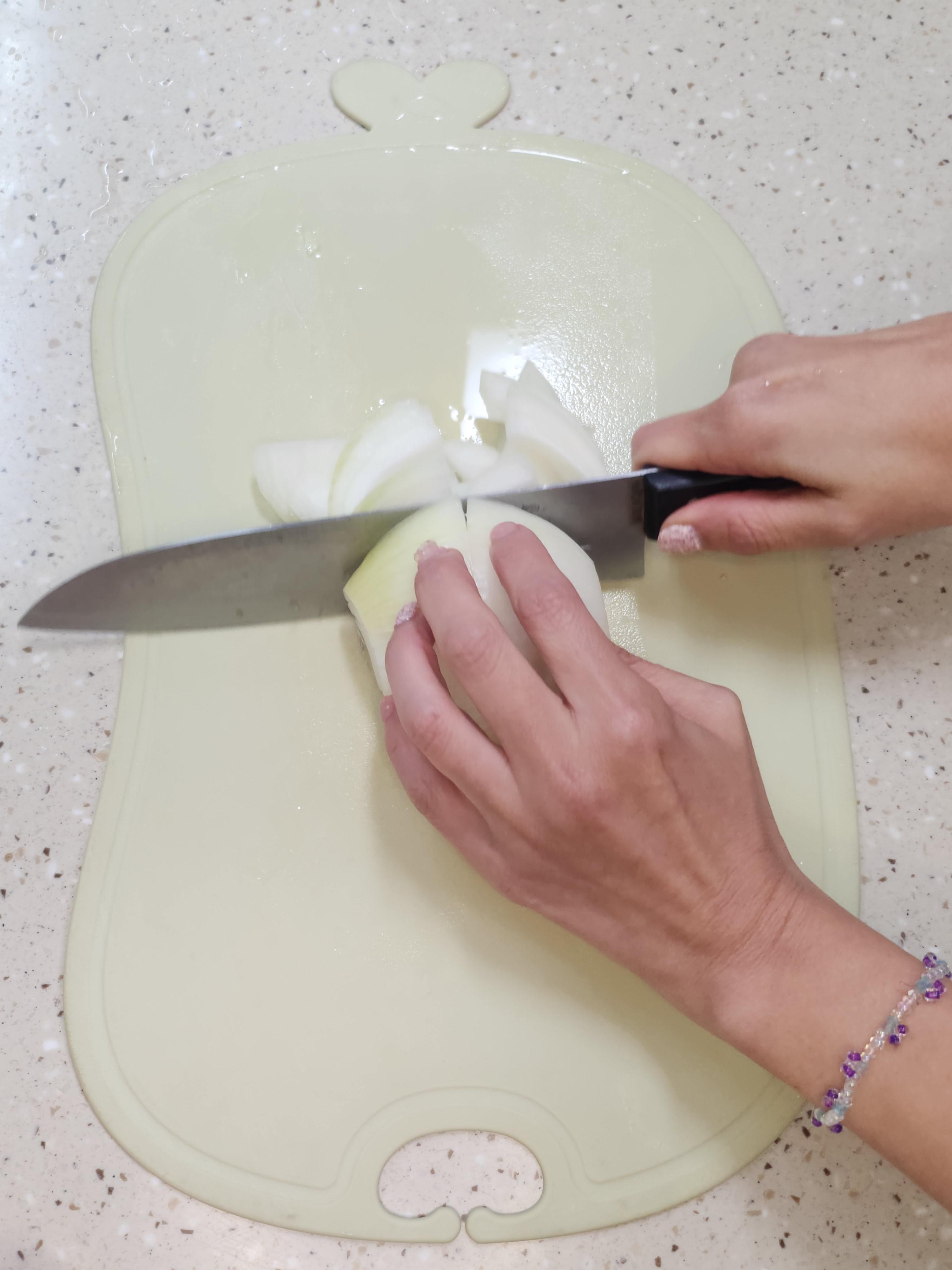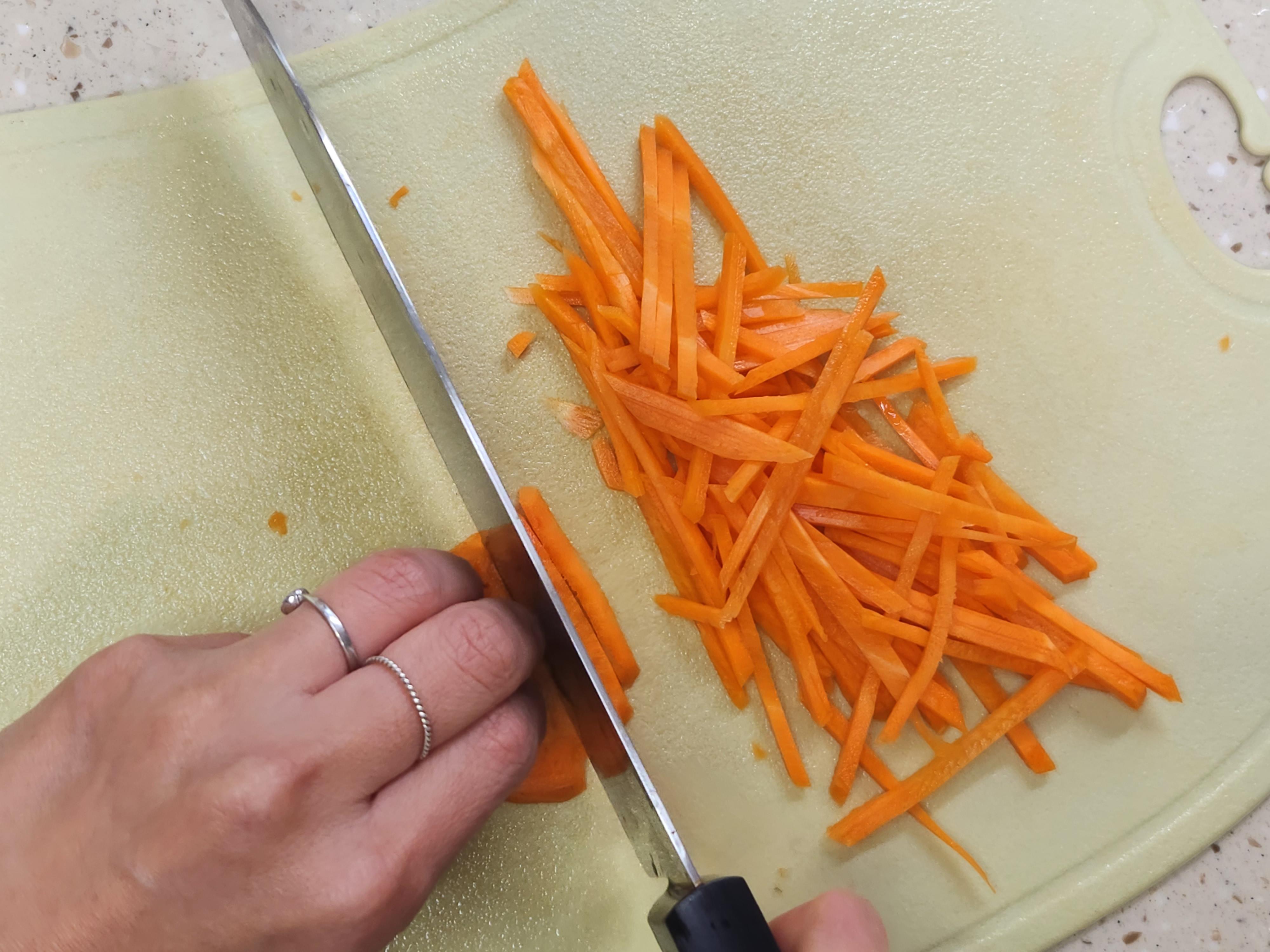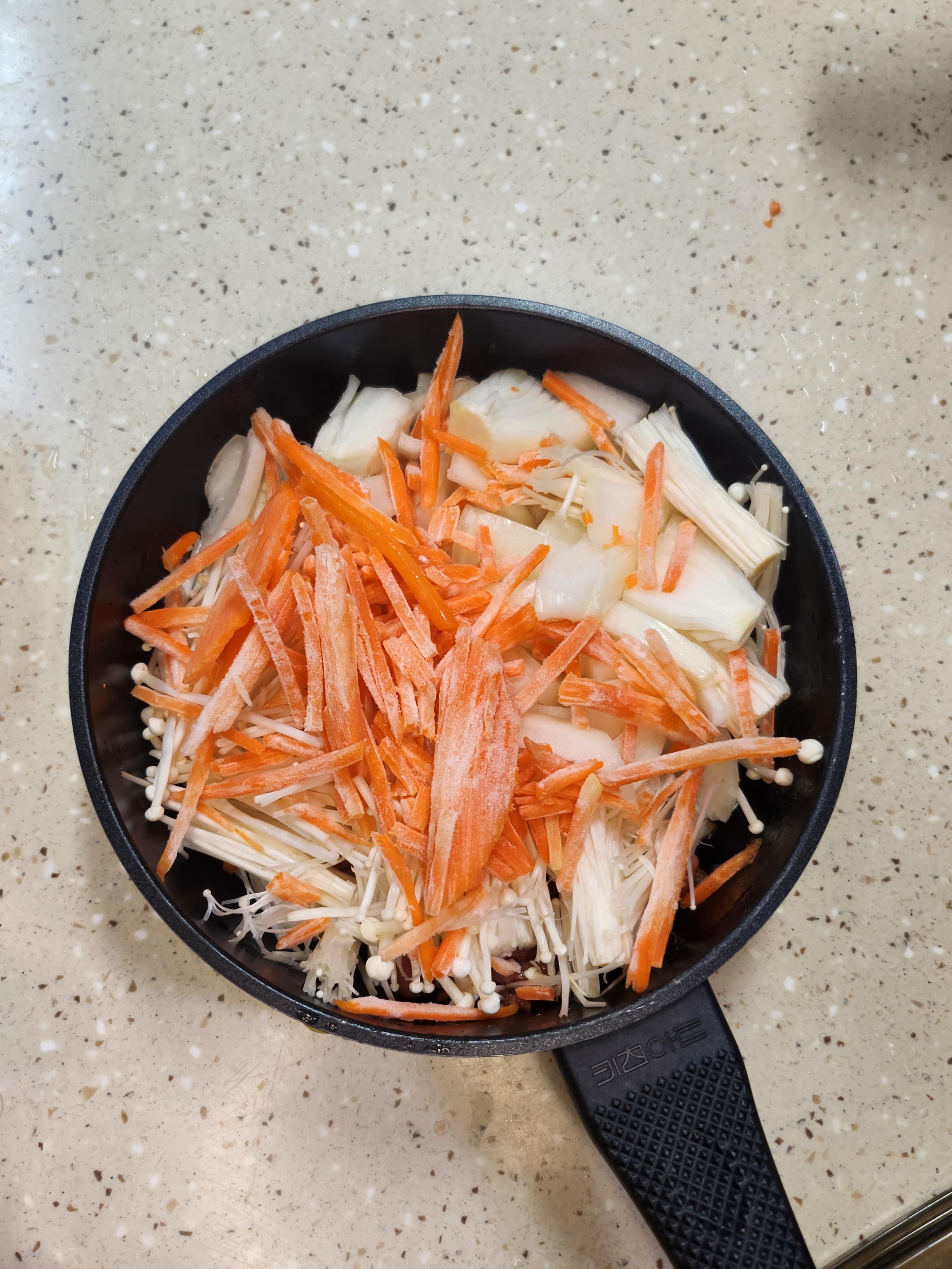 ② 양파, 당근, 팽이버섯을 먹기 좋은 크기로 잘라줍니다.
