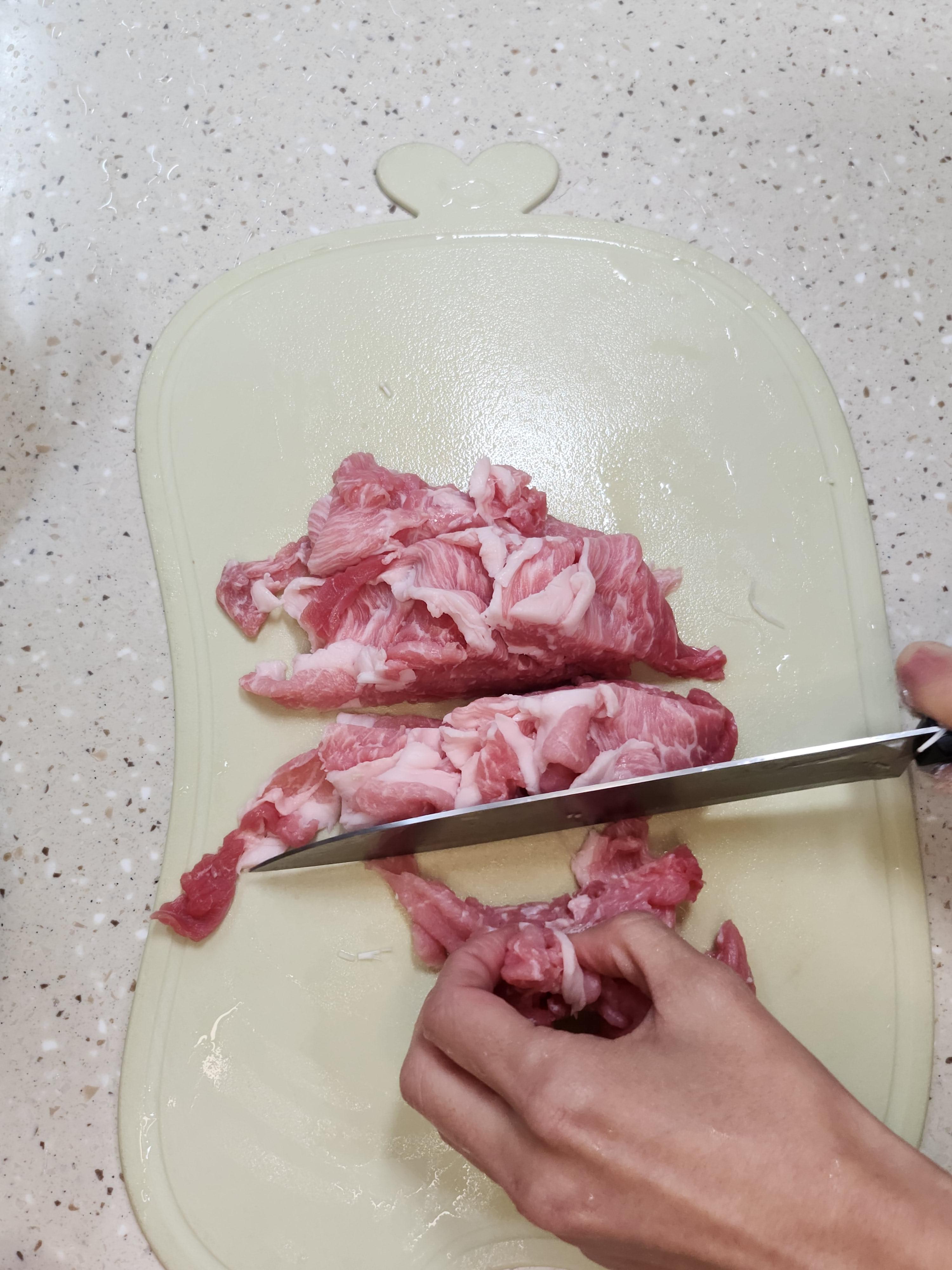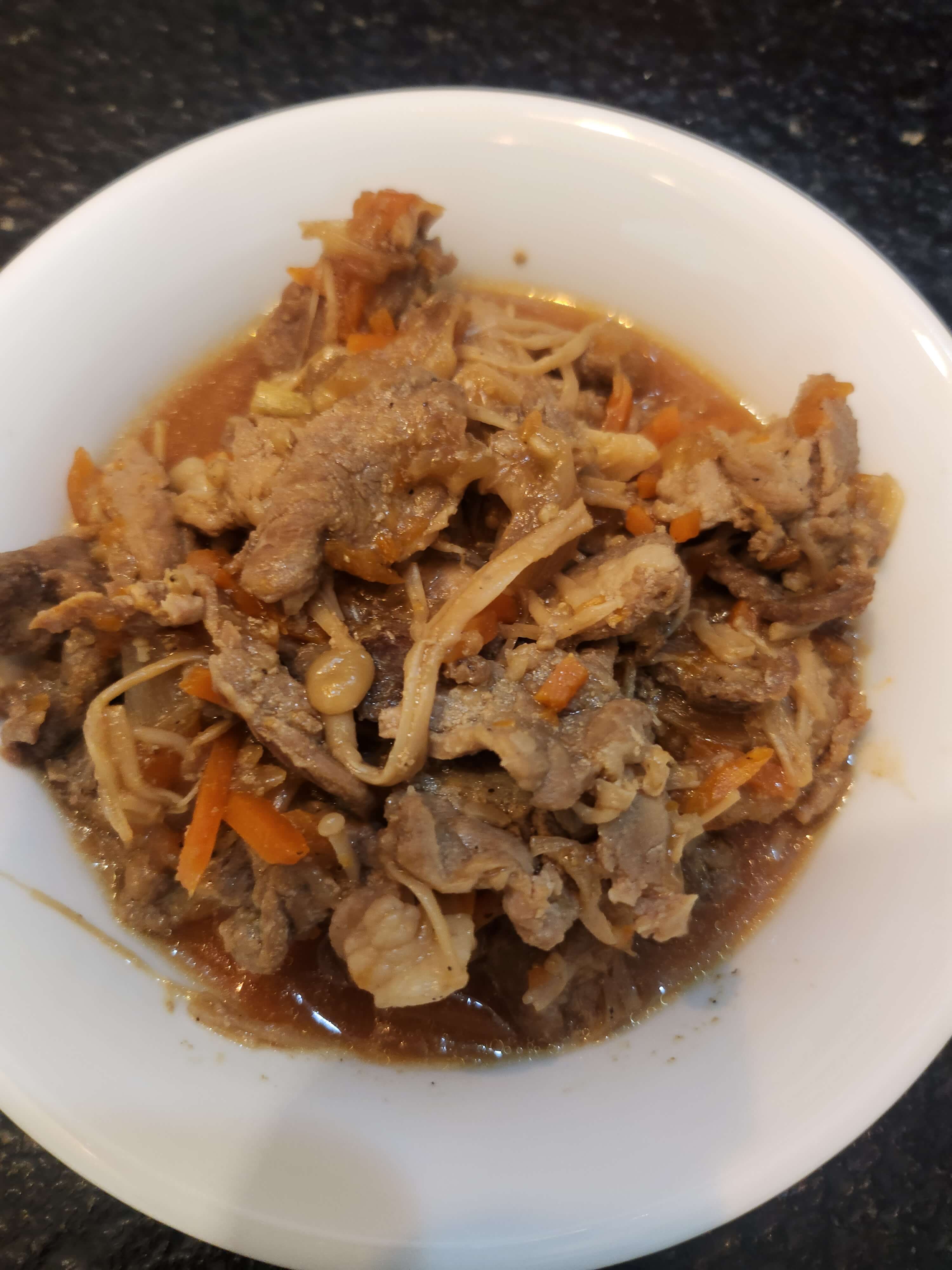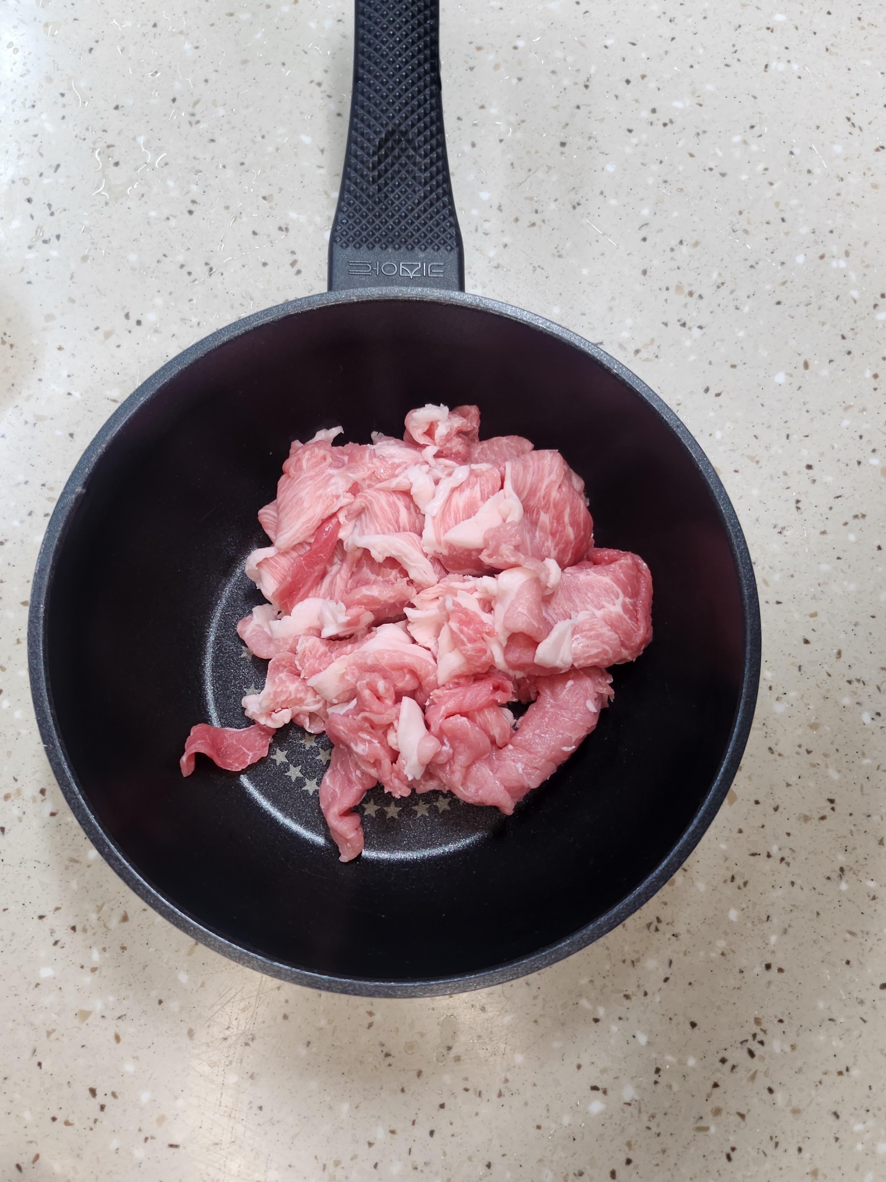 돼지고기 앞다리살 300g, 양파 1/2, 당근 1/4, 팽이버섯 1묶음. 참기름 약간.