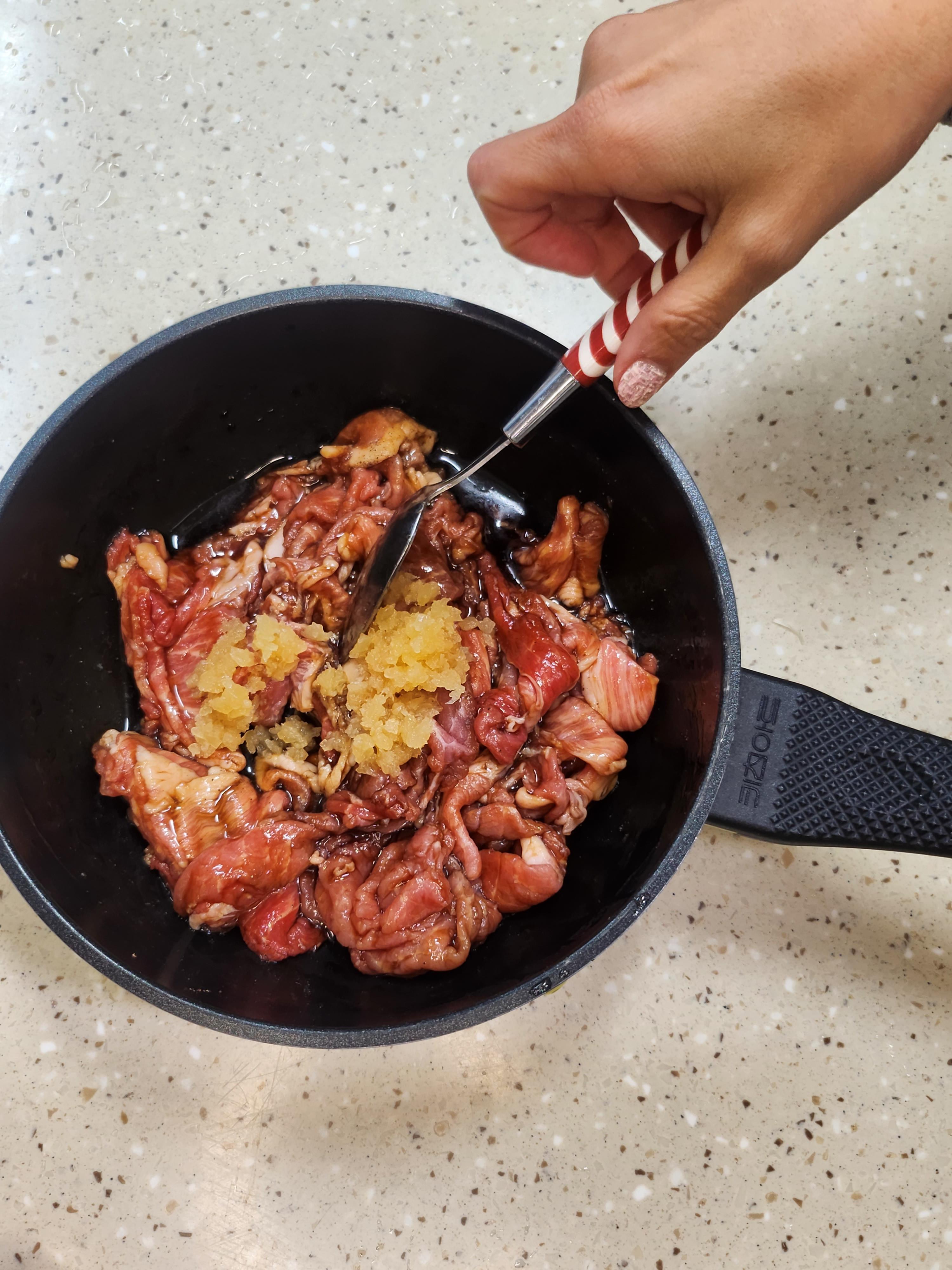 ① 먹기좋은 크기로 준비된 돼지고기에 불고기 양념을 준비해서 재어줍니다.