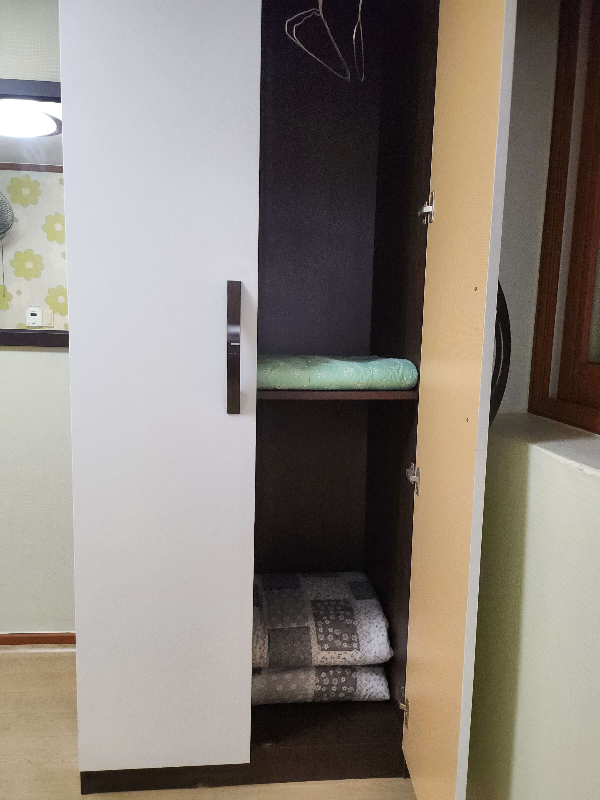 헤어드라이기는 작지만 바람이 꽤 잘 나오는 편이었고 방안 옷장에는 매트, 담요, 베개 1개씩이 준비되어 있었다.