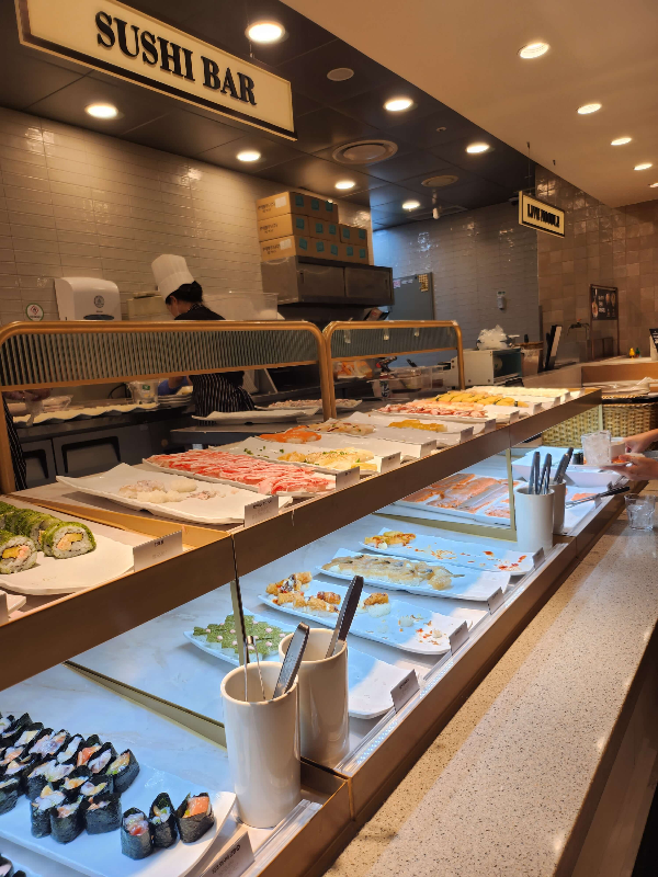 공간이 넓어서 손님이 많아도 쾌적하게 이용할 수 있었고 주말이라 그런지 메뉴도 다양하고 직원분들도 많아 부족한 음식도 없었습니다. 많은 손님의 기분 좋은 이용을 위해 많은 분들이 일해주고 있음을 느꼈습니다. 메뉴도 맛도 전반적으로 좋았고 스시종류의 질도 가격대비 괜찮은 수준이었습니다. 어린아이와 동반하는 분들이 많았는데 아이들이 좋아하는 디저트종류도 많아서 어른아이 할 것 없이 즐겁게 이용할 수 있는 분위기였습니다.