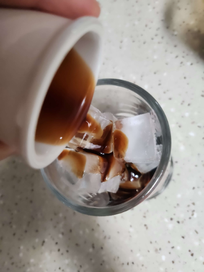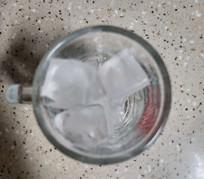 ② 포모나 홍차시럽 0.5잔 (소주컵기준)을 얼음잔에 넣어줍니다.