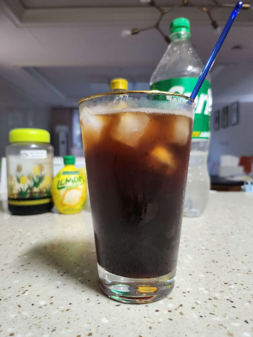 ③ 토닉워터를 3잔 넣고 레몬즙을 취향껏 넣고 섞으면 끝. (저는 레몬즙 1컵 넣는 걸 좋아합니다)