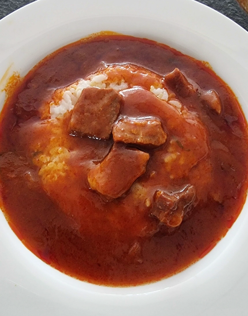 제육덮밥은 돼지고기라서 그런지 소스에 기름이 더 느껴집니다. 그리고 돼지고기 건더기는 좀 딱딱하다고 할까요? 식감은 별로지만 소스 양이 많아서 밥 한 공기에 비벼 먹으니 딱 자작하게 먹을 수 있었습니다. 춘천닭갈비 처럼 매콤한 양념 덕분에 반찬이 없어도 가볍게 먹을 수 있는 소스입니다.