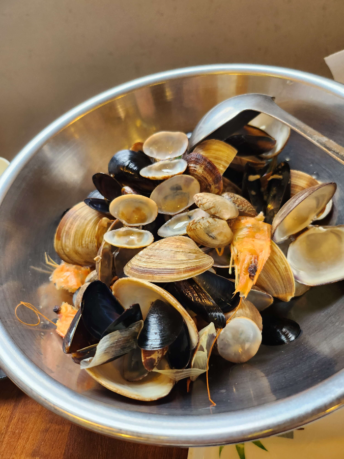 오징어와 전복은 신선했다. 전복은 살아있어서 꿈틀댔고 사이즈는 작은 편이었다. 열심히 해물을 먹었는데 나오는 조개껍데기는 많은데 조개는 손톱만 해서 생각보다 양이 차지 않았다.