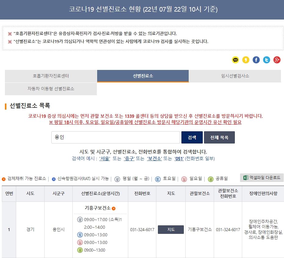여기에서 검색어로 지역만 입력하시면 쉽게 선별진료소 등을 검색할 수 있습니다.