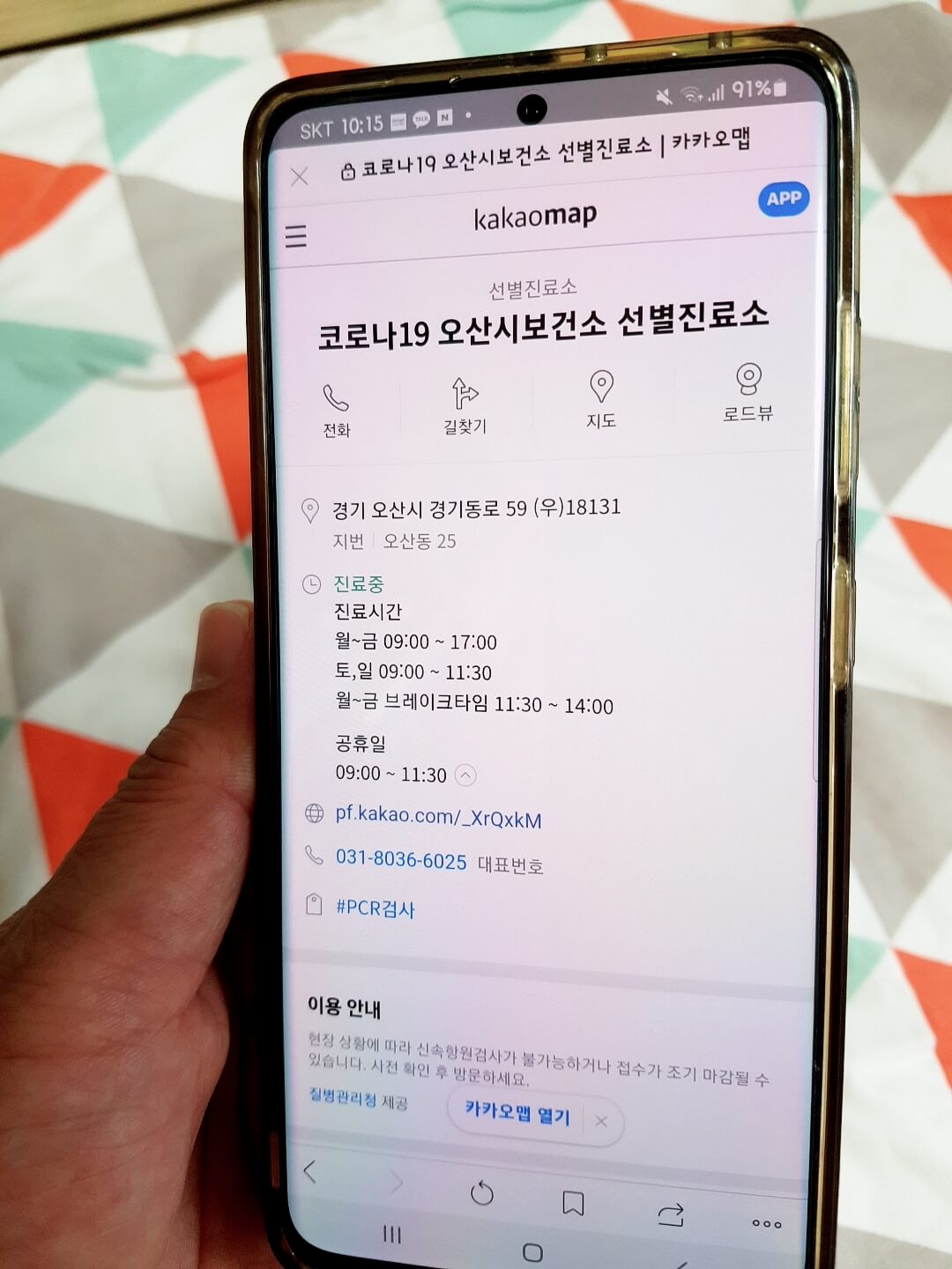 선택한 선별진료소 일요일 진료시간을 확인해서 방문합니다.