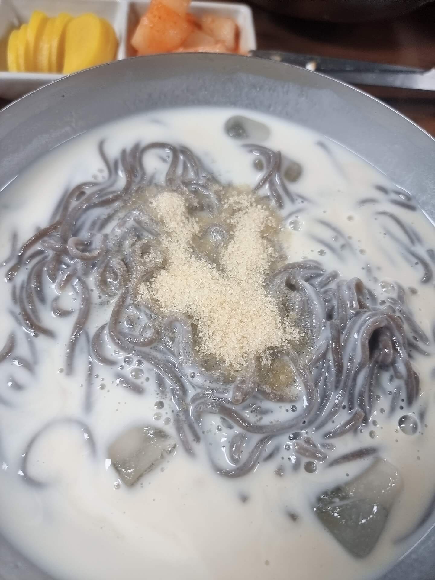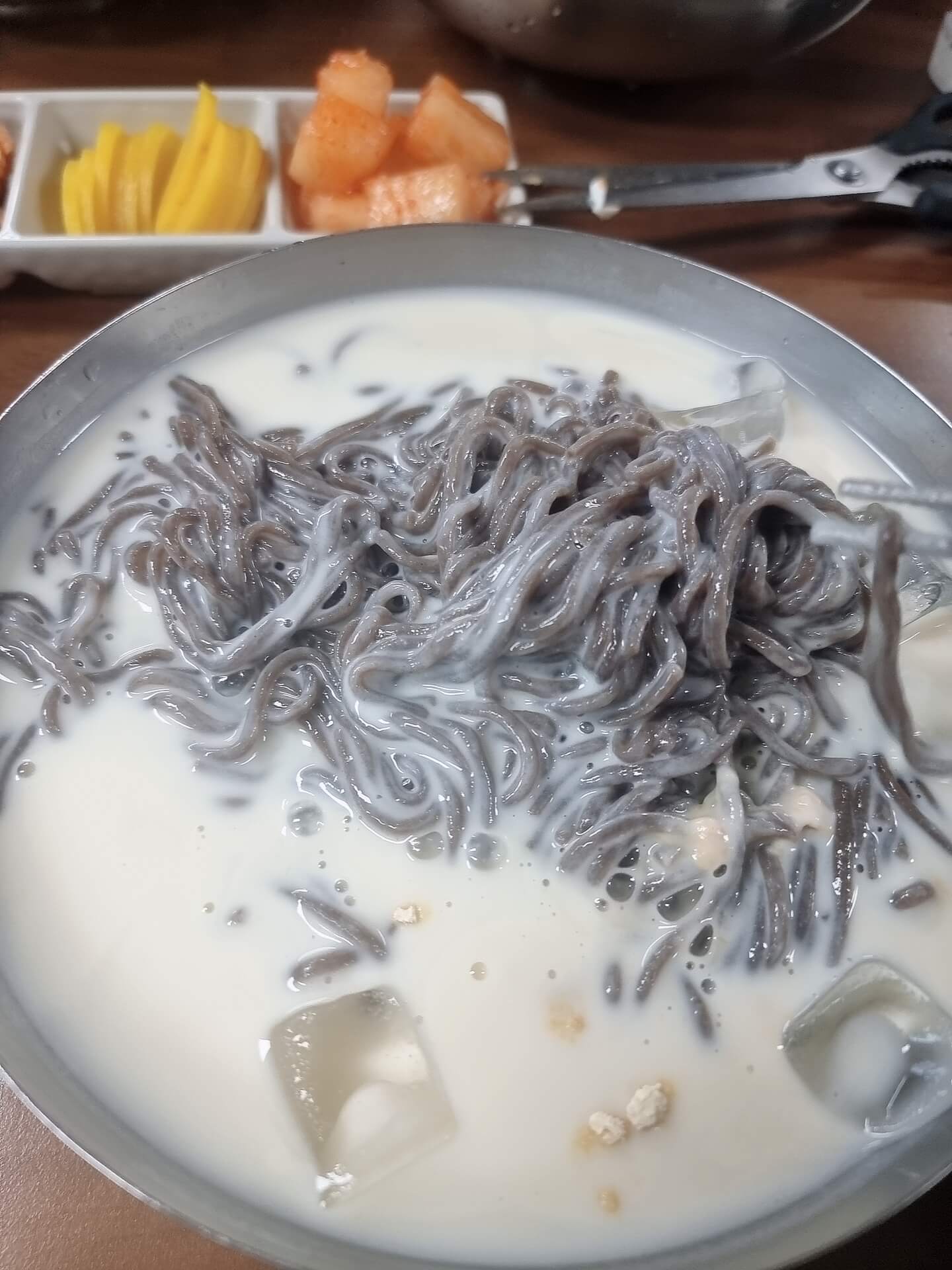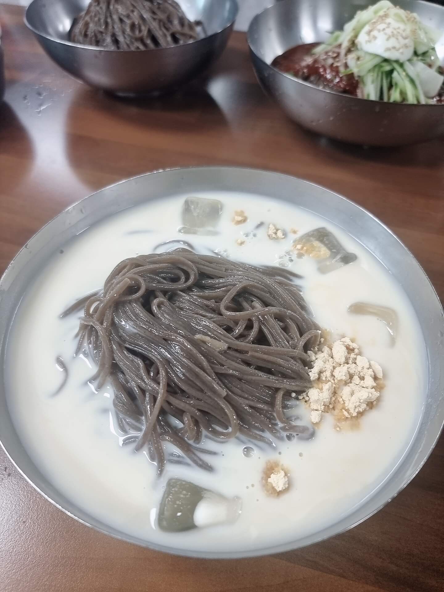 역시 오리지널 콩국수가 제일 맛이 있습니다. 설탕과 소금이 들어간 단짠단짠 콩국수, 진정한 맛은 콩국물만 마셔봐도 알 수 있습니다. 진하고 구수한 콩물 거기에 시원한 얼음이 들어 있어 여름에 먹으면 정말 더위가 싹 사라집니다.