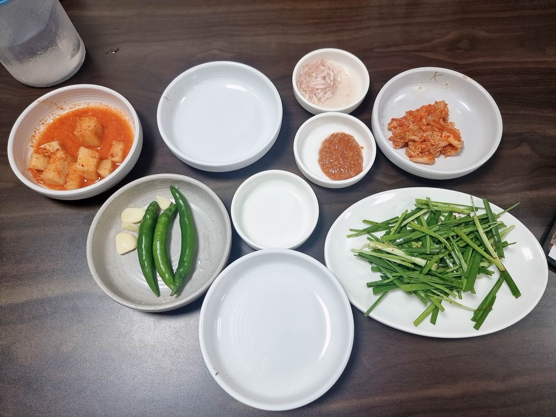 음식점 안으로 들어가시면 빈 테이블에 자리를 찾고 주문하시면 됩니다. 그러면 홀 직원분들이 기본 반찬을 갖다 주고 추가로 반찬이 필요하면 셀프바를 이용하시면 됩니다.