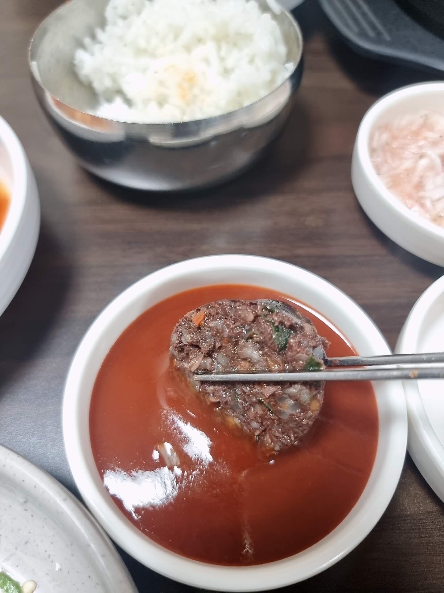 건져 놓은 순대는 초장에 찍어 드시면 피순대의 맛을 느낄 수 있습니다. 한두 개 정도만 건져서 먹고 나머지는 다시 뚝배기에 넣어서 드시면 순대 국물 맛이 달라집니다. 더 피순대의 맛을 느낄 수 있습니다. 밥도 순댓국에 넣고 내장과 함께 초장에 찍어서 드시면 맛있습니다.