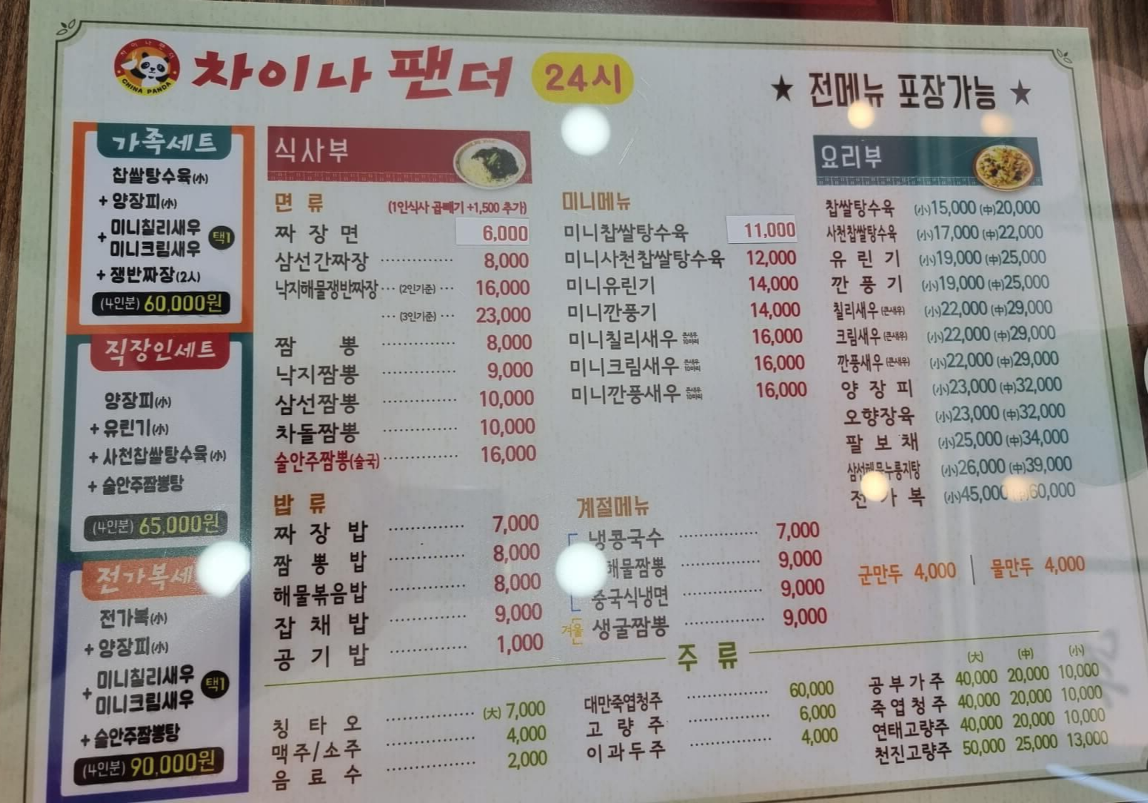 짜장면 한 그릇 가격은 6천 원, 곱빼기는 1,500원 추가입니다. 요즘 짜장면 가격도 많이 올라서 6천원이면 비싼 가격대는 아닙니다. 저희는 짜장면 1개(6천원), 짬뽕 1개(8천원), 찹쌀탕수육(소) 이렇게 주문했습니다. 세식구 점심 한끼로 엄청 푸짐하게 먹을 수 있는 양입니다.