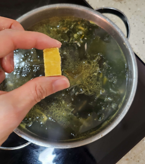 그래서 조금만 넣고 필요시 추가로 치킨스톡을 넣거나 다른 방법으로 간을 추가하면 됩니다.