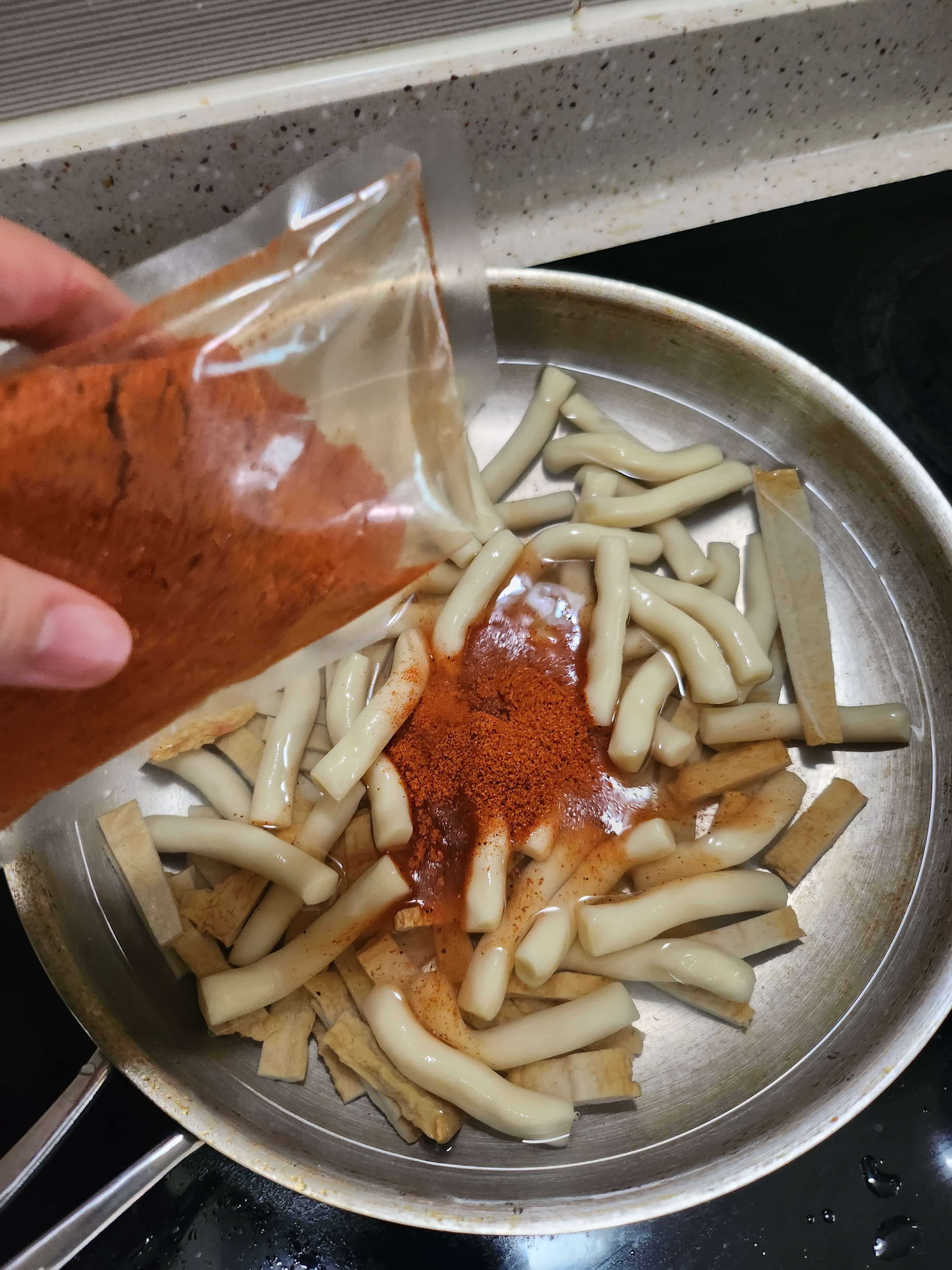 캠핑밀키트 신대장 떡볶이의 조리과정 사진입니다.