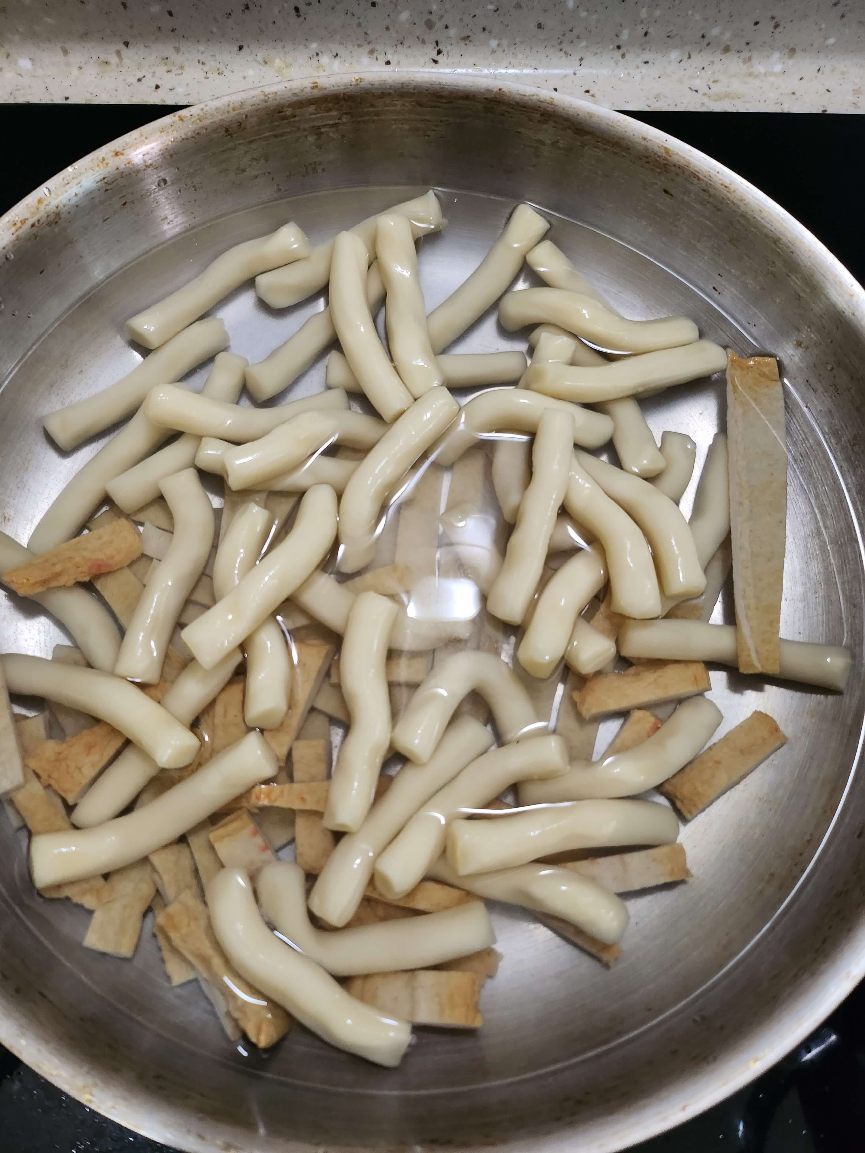 사진보다 육안으로 보는게 더 눈에 잘 띄는데요, 말라있던 국화꽃에 뜨거운 물을 부으면 꽃잎이 펴지듯 떡이 손가락 마디처럼 오동동해짐이 눈에 보입니다. 그리고 1분만 더 조리하면 끝입니다.