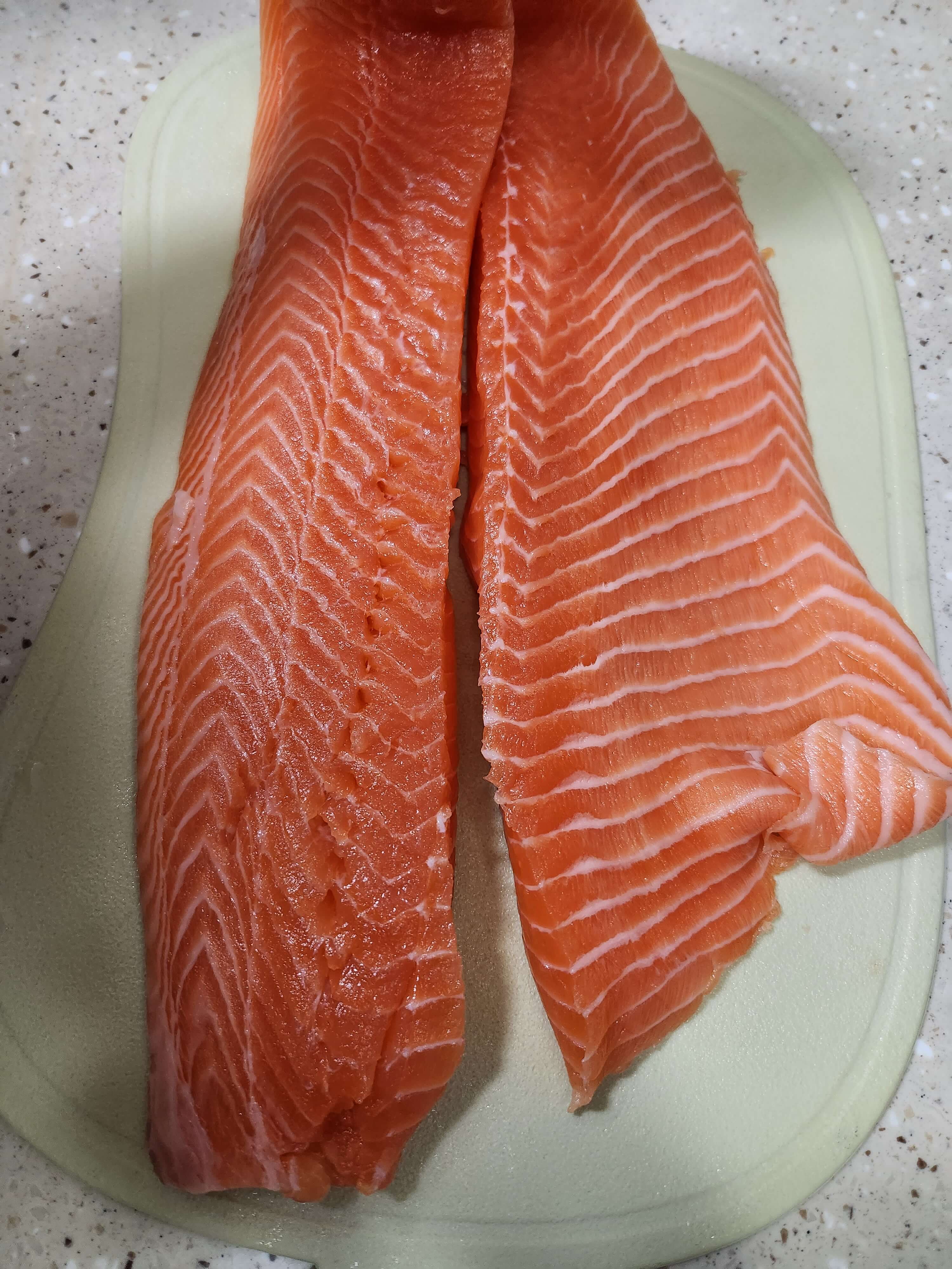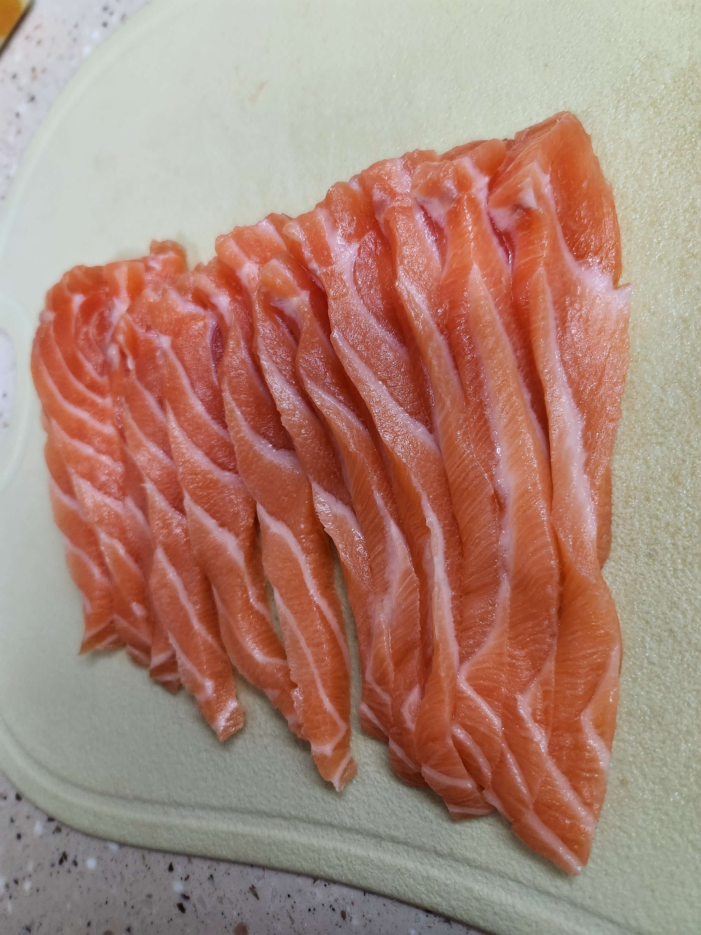 저는 길고 약간 두께감있는 연어를 좋아해서 이렇게 잘라보았어요.