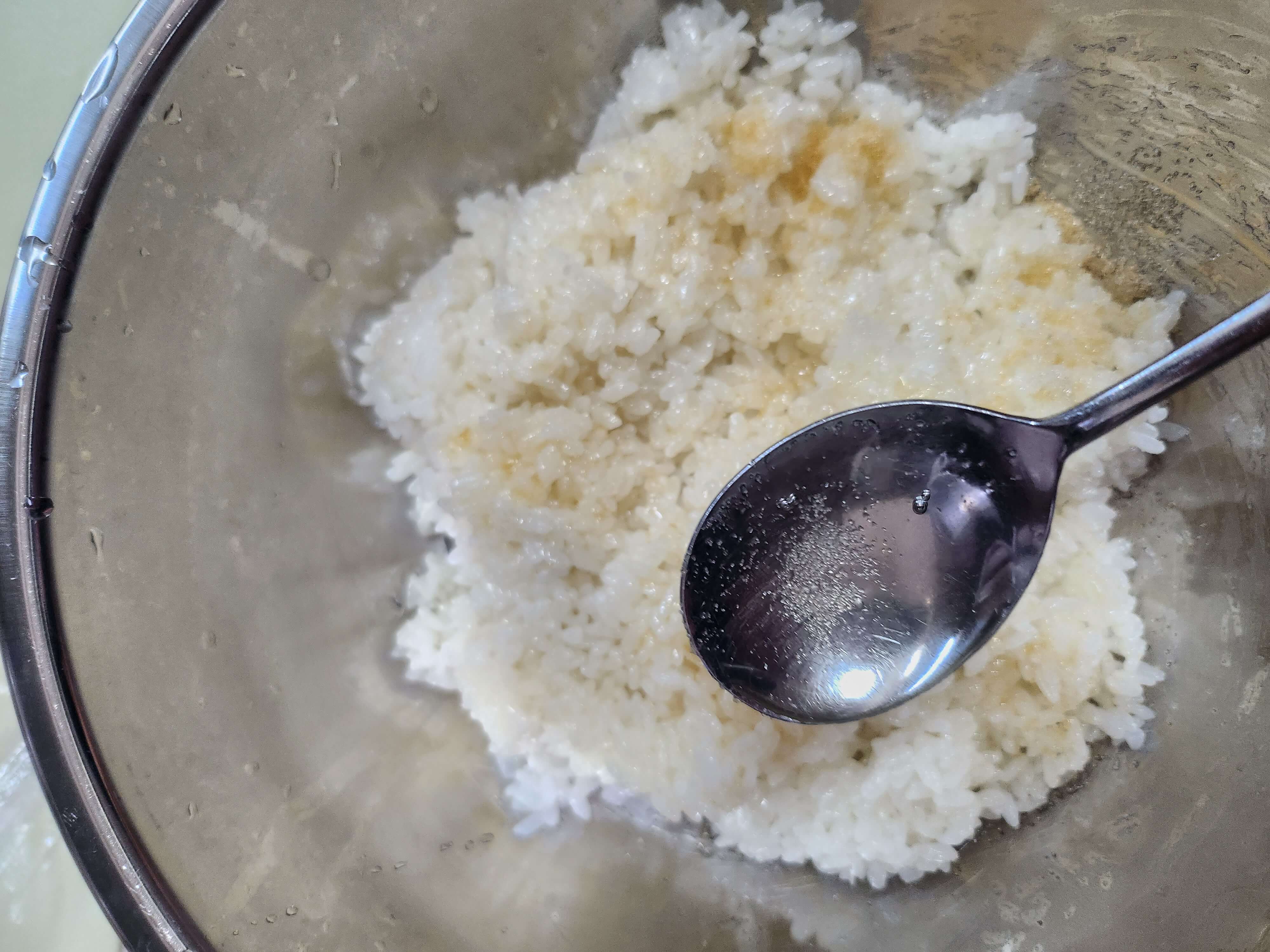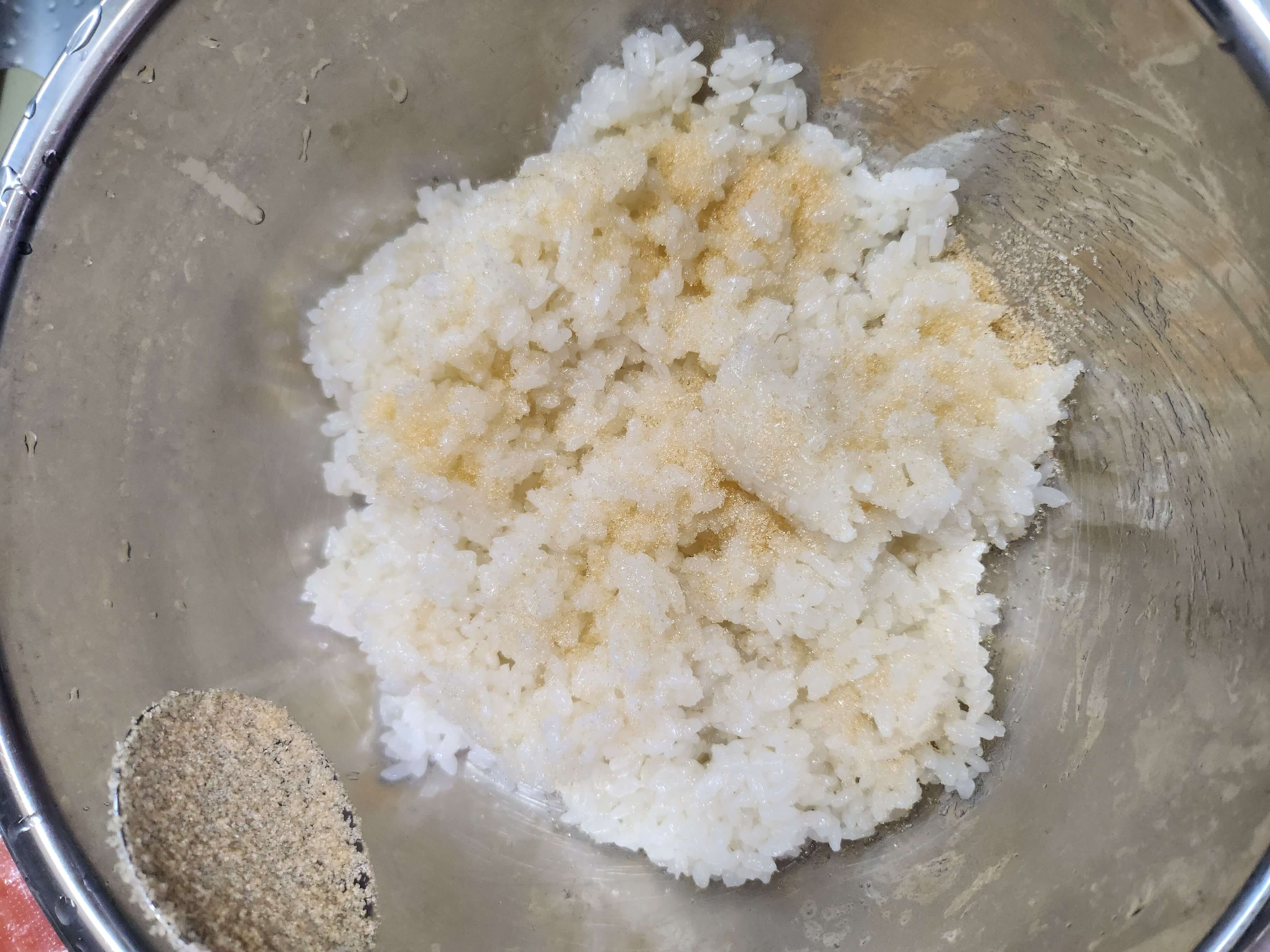 밥 2공기 + 설탕 1스푼 + 식초 2스푼 + 소금 약간