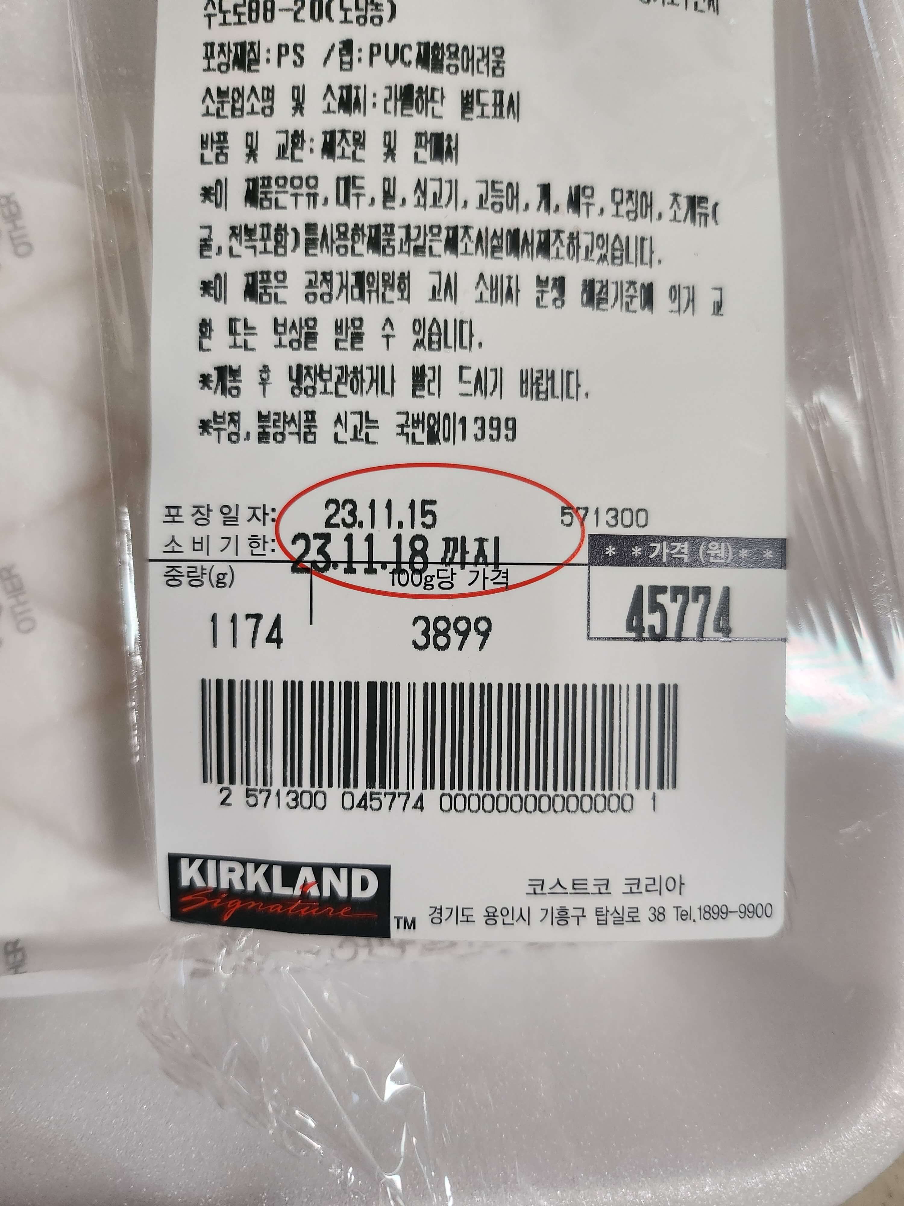 2023년 11월 기준 100g당 3899원으로 1174g이 45,774원입니다.