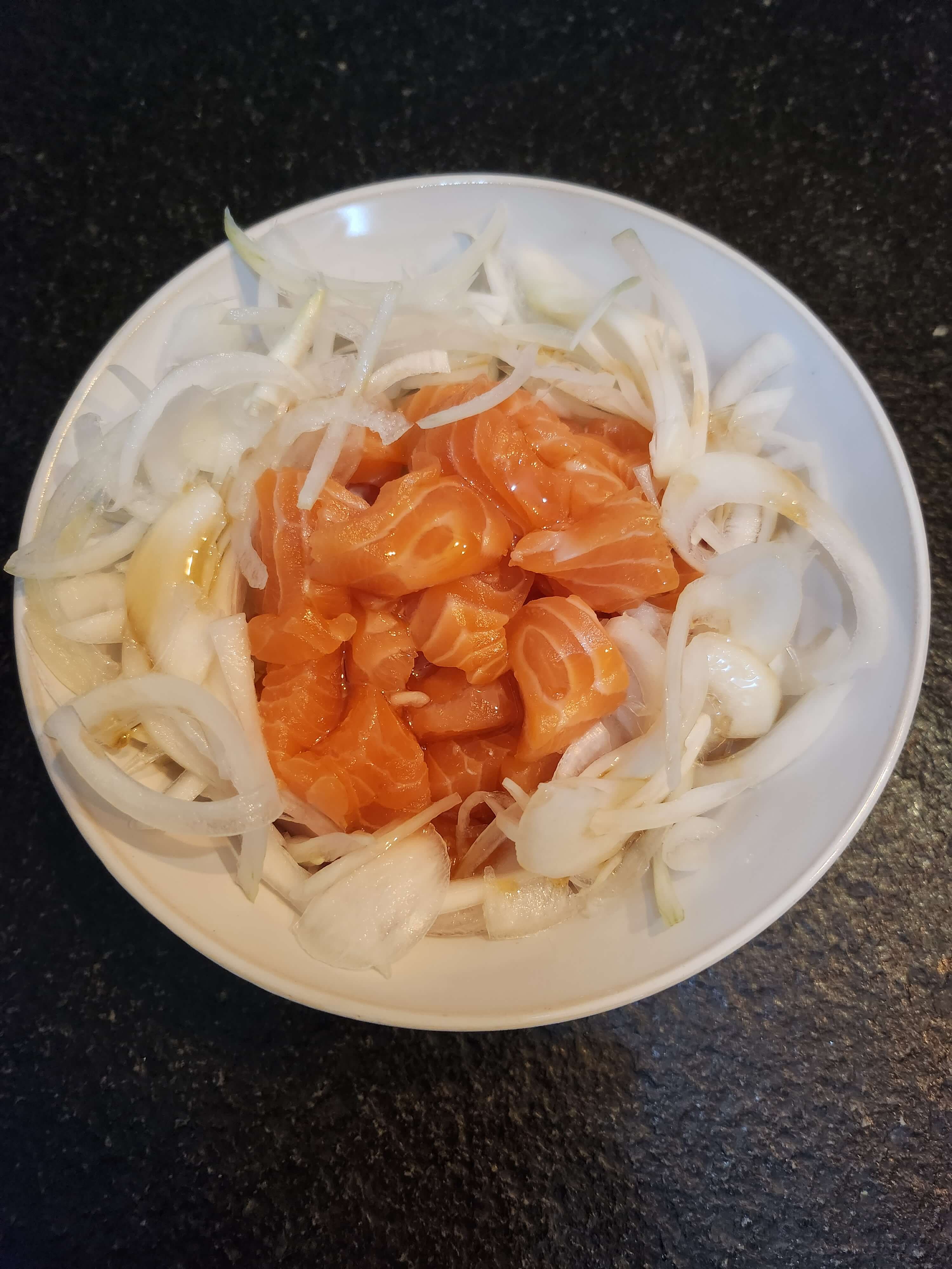 먹다보니 남은 연어는 다음날 연어 회덮밥으로 먹습니다. 연어를 깍둑썰기한 다음 집에 있는 야채를 넣고 참기름, 초고추장을 휙 둘러주면 끝.