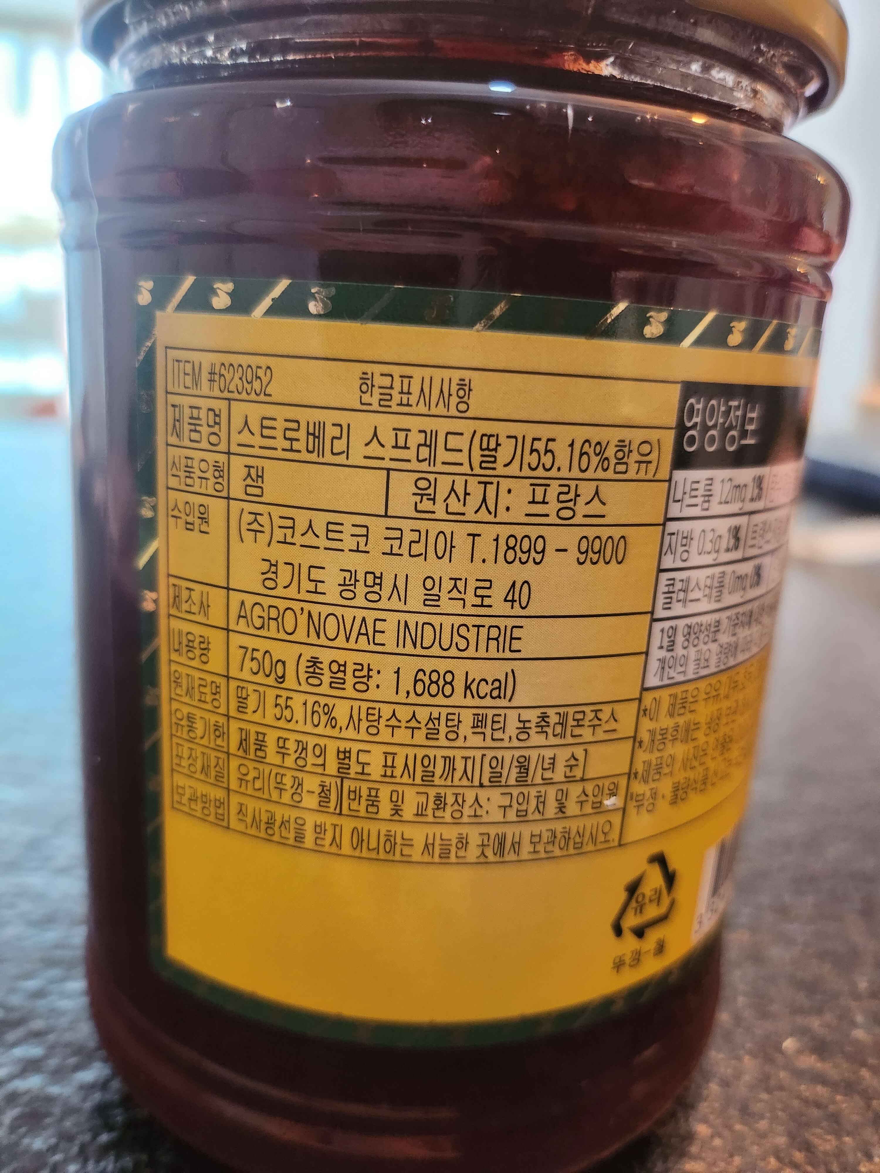코스트코 딸기잼, 르꼼드 프로방스 딸기쨈... 영양정보입니다.