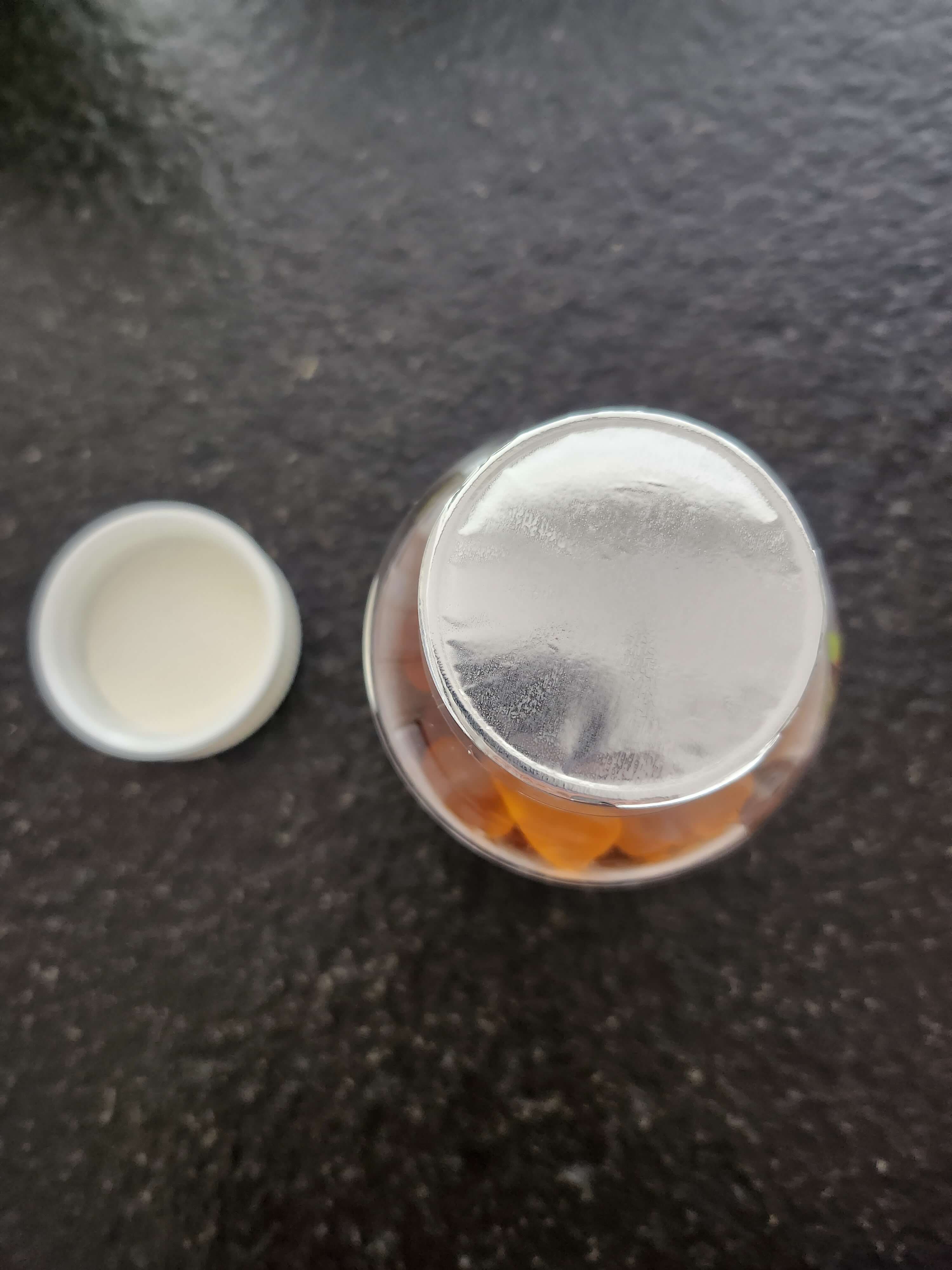 뚜껑은 아이들이 쉽게 열지 못하도록 눌러서 돌려야하는 방식으로 되어 있습니다. 나이 어린아이들이 너무 자주 먹어도 안 좋으니 이 방식이 좋다고 봅니다. 초등 고학년인 저희 아이는 혼자서 잘 돌려 먹습니다.