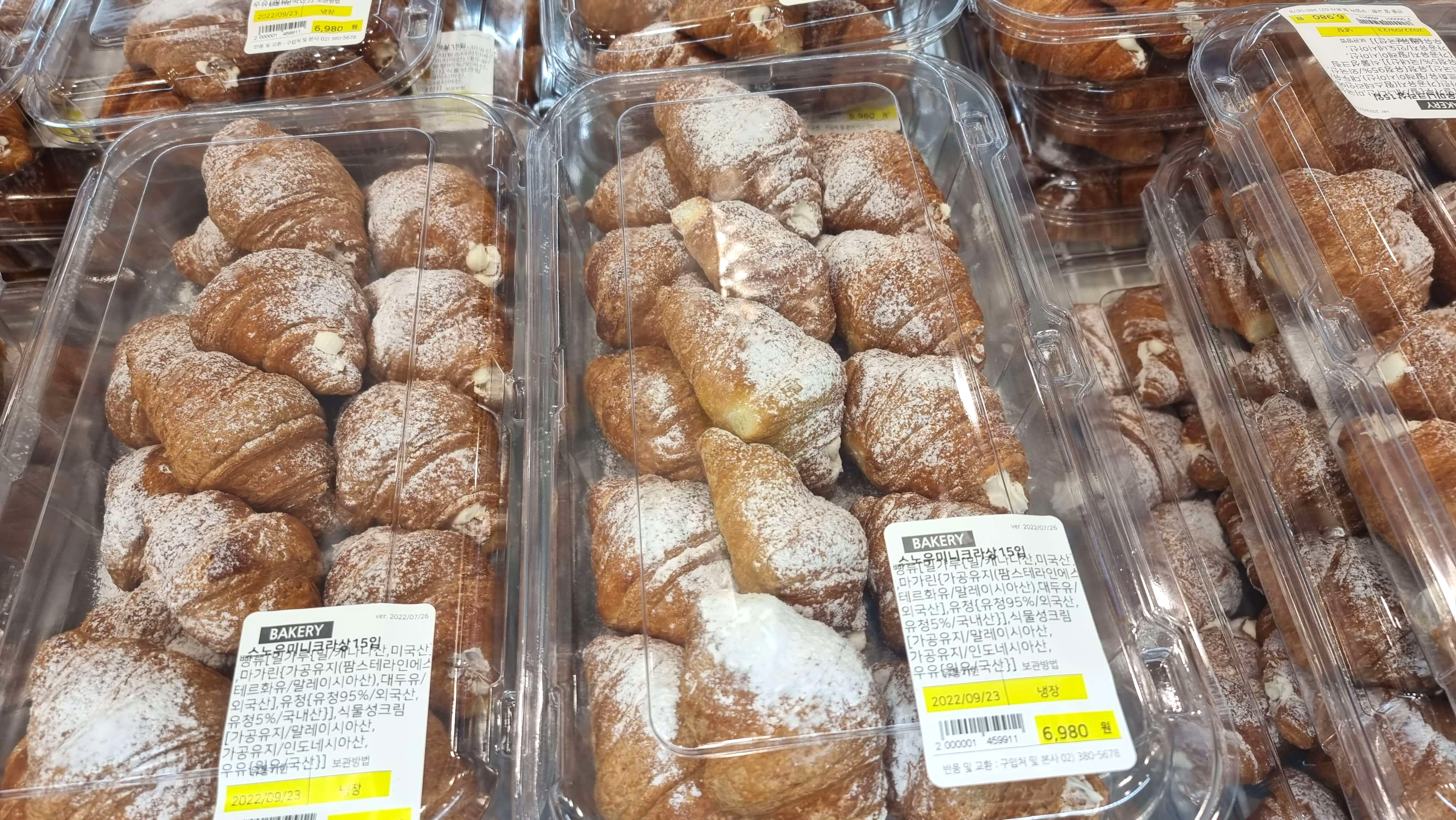동탄 트레이더스에서 구입한 스노우미니크라상은 1박스에 총 15개 크림이 들어있는 크루아상으로 가격은 6,980원입니다. 만원도 아니고 약 7천 원에 15개 크림이 듬뿍 들어 있는 크루아상을 구입할 수 있습니다.