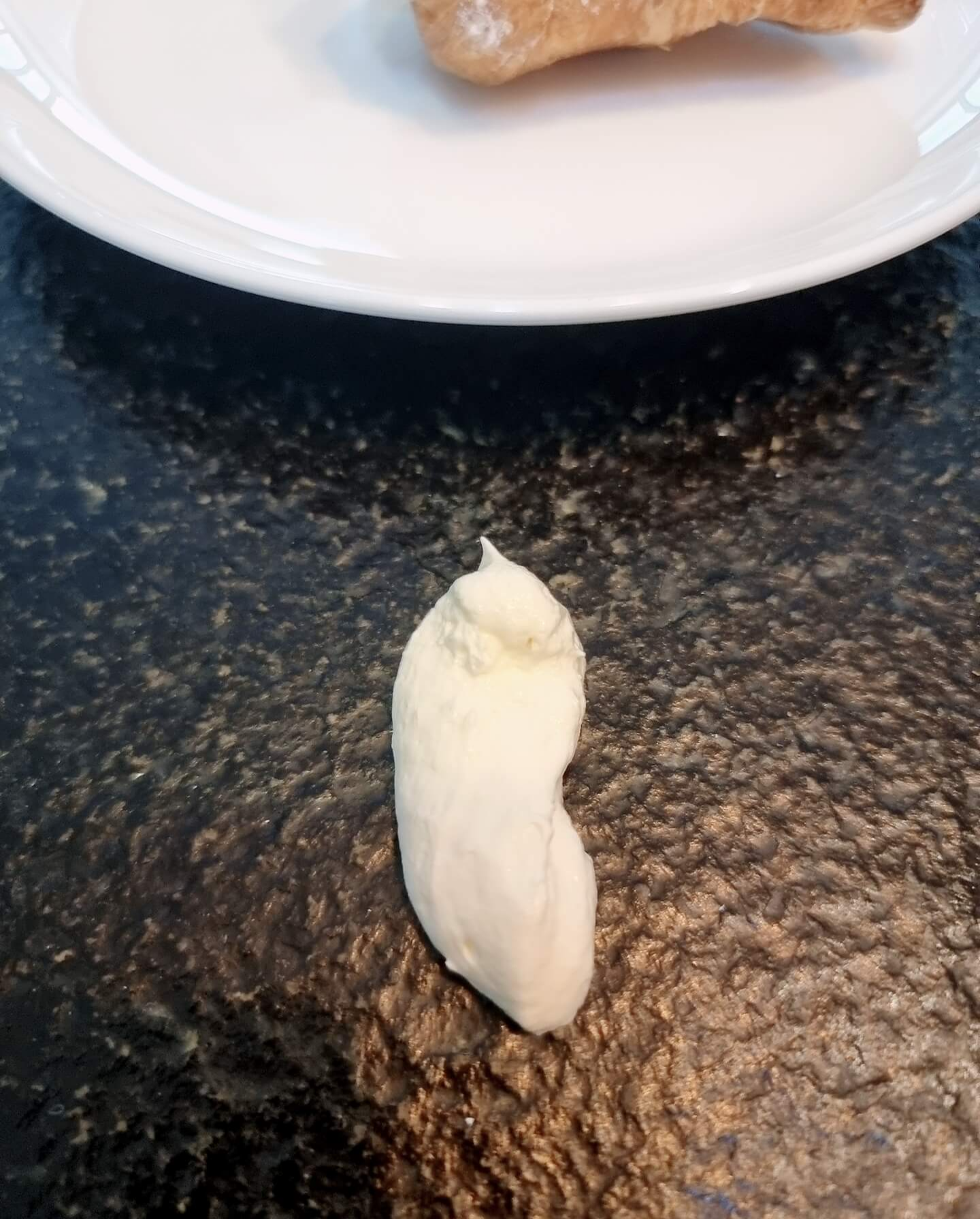 전 크루아상 먹으면서 사진 찍다가 크림을 식탁에 떨어뜨렸습니다. 가격이 저렴해서 크림이 조금들어 있을까 걱정했는데 생각과는 반대로 정말 듬뿍들어 있었습니다.
