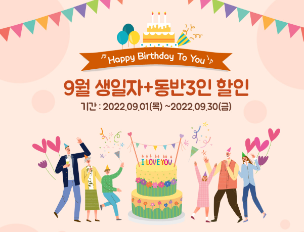 ⊙ 생일자 할인은 생일을 확인 가능한 신분증 지참이 필수입니다.(음력 생일 관계없이 신분증 표기일 기준)